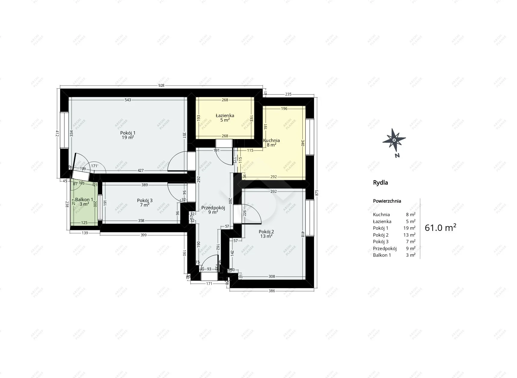 Trzypokojowe mieszkanie przy ulicy Rydla znajduje się na 1 piętrze w 3 piętrowym budynku z 1965 roku i składa się z: