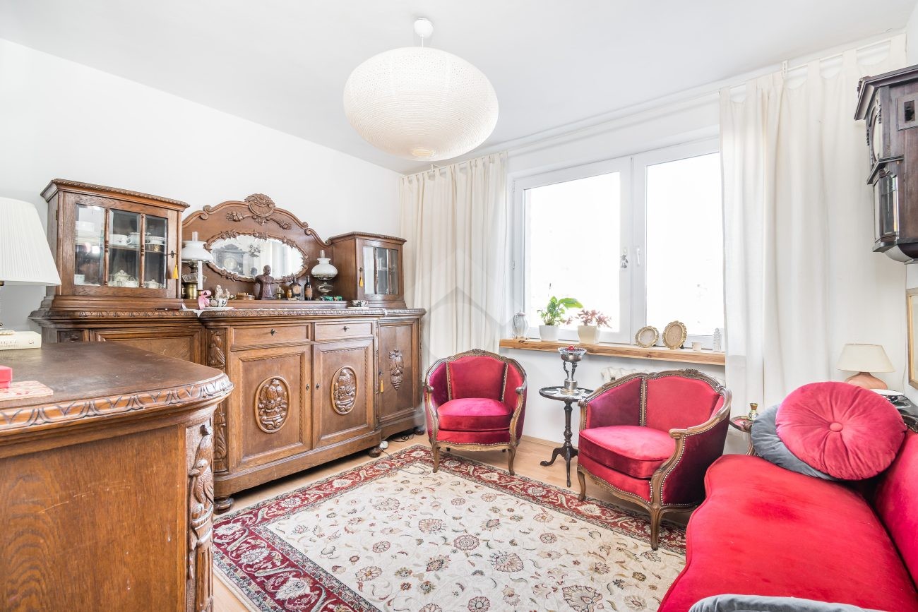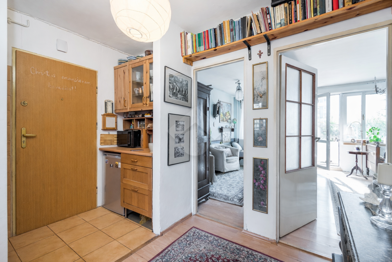 The 56 m² apartment is situated on the 3rd floor of a 10-storey building from the 1970s. It consists of four separate rooms, kitchen, a bathroom with a toilet, and a hallway with space for built-in wardrobes.