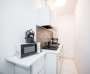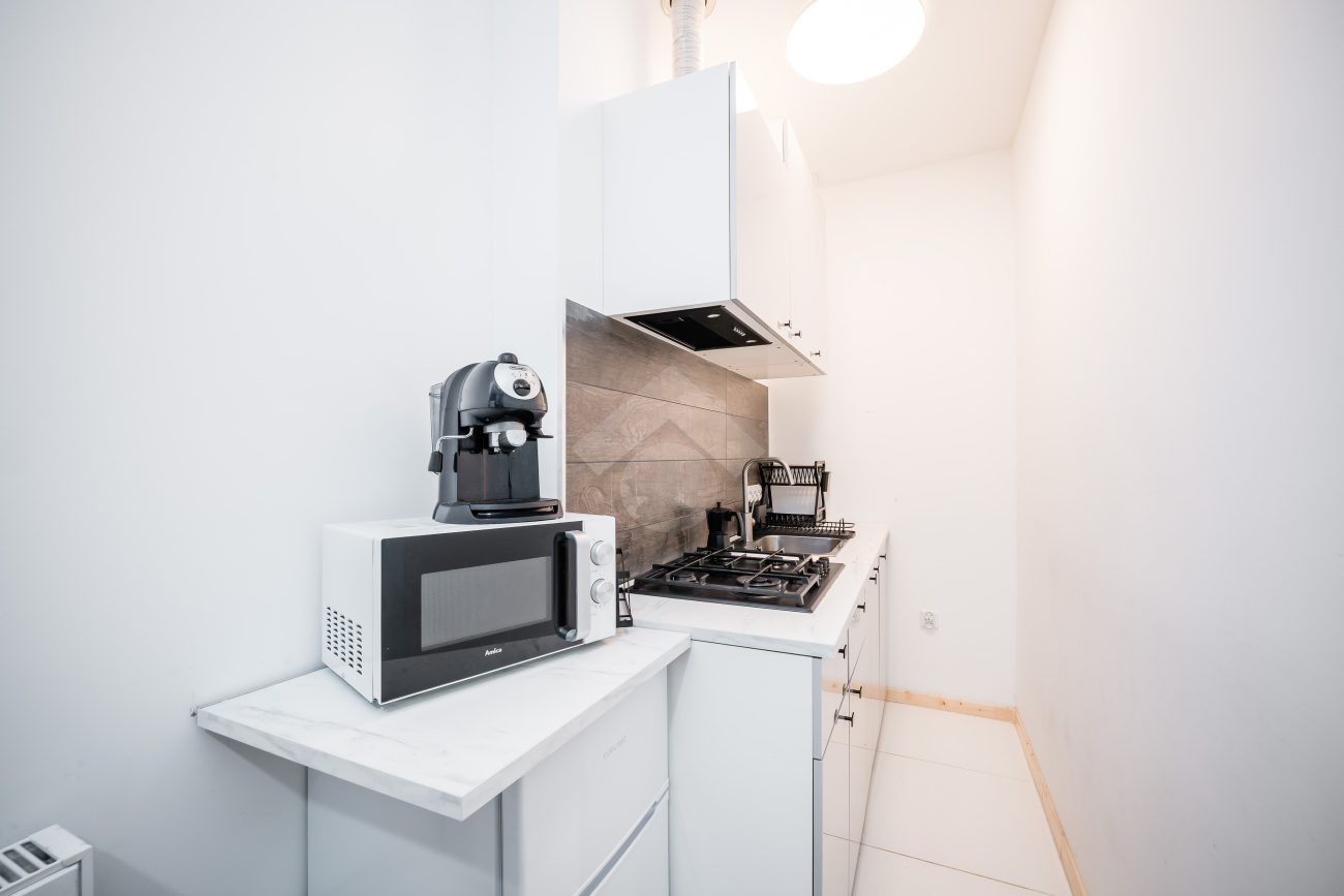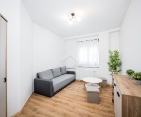 Condition of the apartment: Very good, recently renovated. The rooms are furnished with essential furniture – ready to move in. The kitchen is equipped with a fridge with freezer, a gas stove, and a microwave. The bathroom includes a bathtub and a washing machine. The apartment is heated by a gas boiler located outside the living area. The property has a northern exposure.