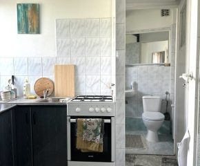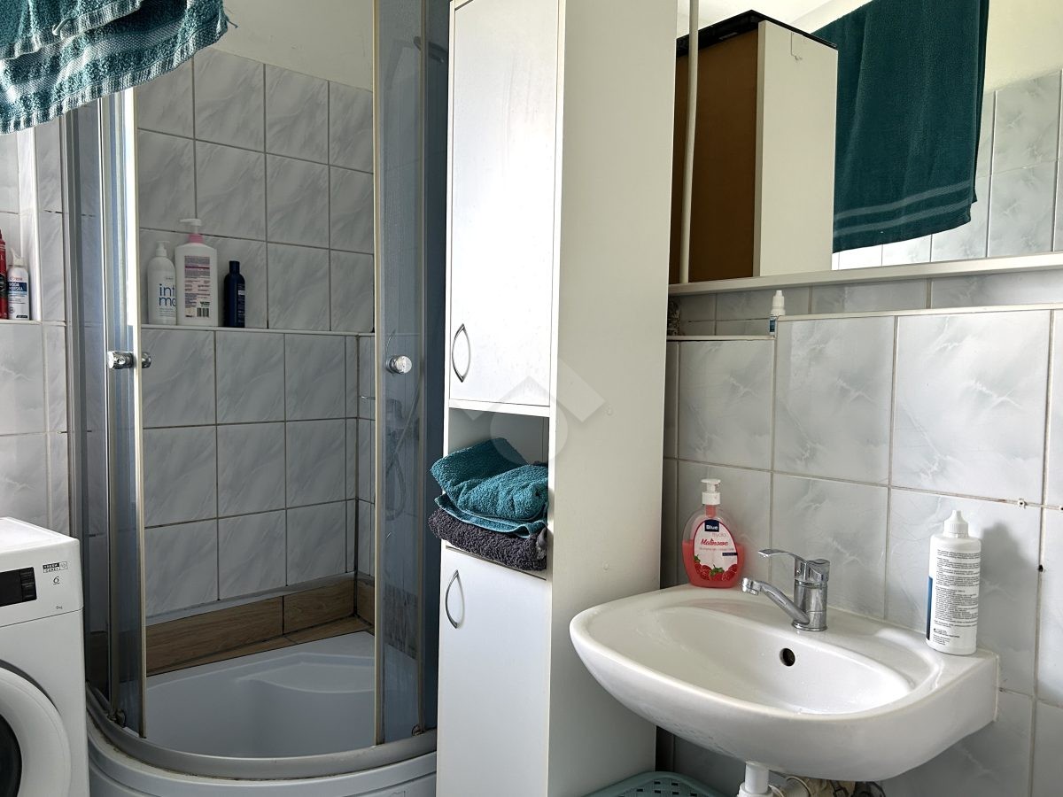Dobry – w części aneksu kuchennego zabudowa kuchenna wyposażona w podstawowe sprzęty AGD. W łazience znajduje się prysznic, umywalka, pralka oraz WC.