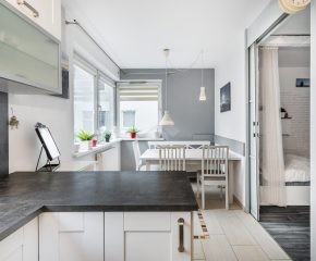 Budynek położony jest w spokojnej dzielnicy Dąbie, która charakteryzuje się doskonałym połączeniem zieleni, spokoju oraz bliskości centrum. W okolicy znajdują się malownicze tereny spacerowe, jak bulwary wiślane, Park Lotników Polskich oraz liczne ścieżki rowerowe, które zapewniają idealne warunki do rekreacji na świeżym powietrzu. Dąbie to również doskonałe miejsce dla osób ceniących sobie dobrą komunikację miejską – szybki dostęp do linii tramwajowych i autobusowych umożliwia sprawne poruszanie się po Krakowie. Dzielnica posiada rozwiniętą infrastrukturę, w tym szkoły, przedszkola, sklepy, restauracje oraz punkty usługowe, co czyni ją bardzo wygodnym miejscem do życia.