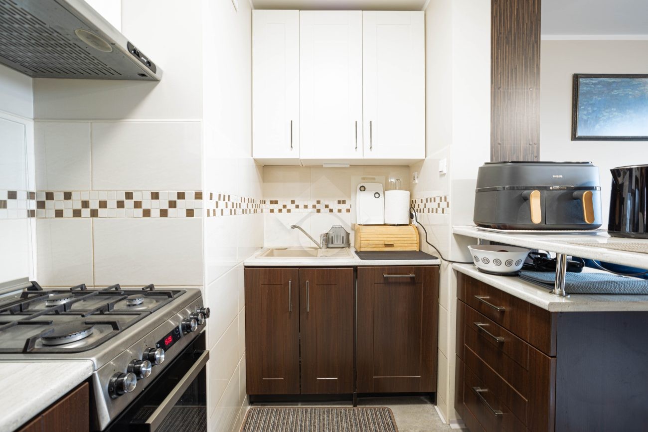 Budynek położony jest w spokojnej dzielnicy Dąbie, która charakteryzuje się doskonałym połączeniem zieleni, spokoju oraz bliskości centrum. W okolicy znajdują się malownicze tereny spacerowe, bulwary wiślane oraz liczne ścieżki rowerowe, które zapewniają idealne warunki do rekreacji na świeżym powietrzu. Dzielnica posiada rozwiniętą infrastrukturę, w tym szkoły, przedszkola, sklepy, restauracje oraz punkty usługowe, co czyni ją bardzo wygodnym miejscem do życia.