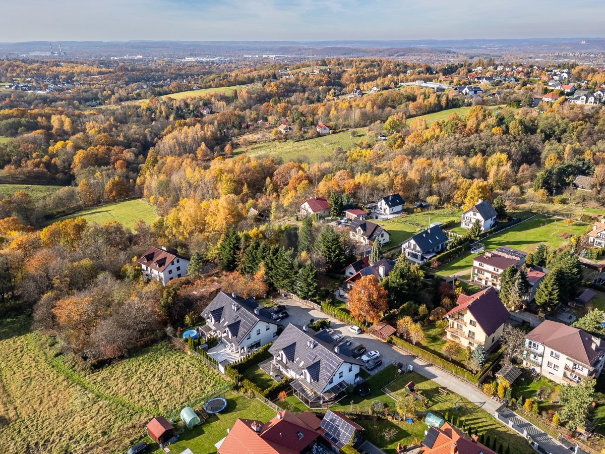 Dojazd samochodem do centrum Krakowa zajmuje około 20 minut, co czyni lokalizację wyjątkowo dogodną zarówno dla osób pracujących w mieście, jak i ceniących spokojne, zielone otoczenie.