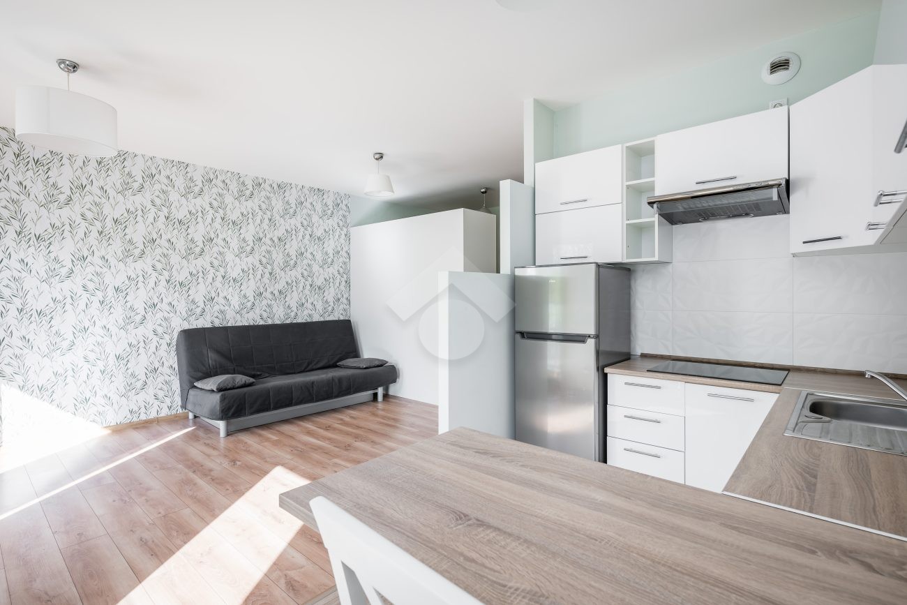 Nieruchomość: proponujemy Państwu mieszkanie o powierzchni 33,86 m2, położone na pierwszym piętrze w nowoczesnym bloku z windą. W skład nieruchomości wchodzi: przestronny pokój z otwartą kuchnią, łazienka z WC i prysznicem oraz balkon. Mieszkanie w stanie bardzo dobrym, w pełni umeblowane. W pokoju znajduje się: rozkładana sofa, komoda i duża pojemna szafa. Kuchnia wyposażona w: sprzęty AGD, tj. płyta indukcyjna, lodówka z zamrażarką, zmywarka.