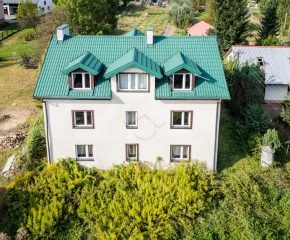 Dom w dobrym stanie technicznym. Budynek z cegły, przebudowany i nadbudowany w 2008 roku. W tym czasie wykonano kompleksowe docieplenie elewacji (styropian 15 cm), wymieniono okna na plastikowe oraz pokryto dach blachodachówką. Nieruchomość wyposażona jest w pompę ciepła, klimatyzację, instalację alarmową oraz instalację teleinformatyczną. Wymieniono instalację elektryczną (trójfazową).