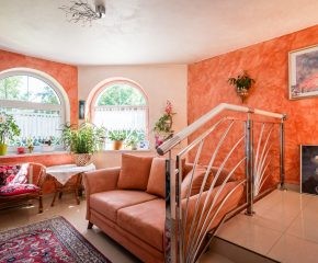 – Parter: przedsionek (13,30 m2), pokój gościnny (32,50 m2) połączony z kuchnią (16,50 m2) i klatką schodową (4,50 m2). WC z prysznicem (1,6 m2), gabinet (14,60 m2) i pokój (15,30 m2)
