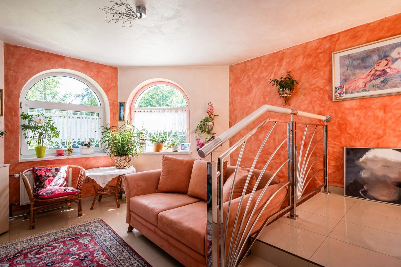 Dom w bardzo dobrym stanie, parterowy, podpiwniczony z poddaszem użytkowym. Budynek ogrzewany instalacją gazową. Dodatkowo wyposażony w kominek pełniący funkcję źródła ciepła rekreacyjnego oraz wspomagającego ogrzewanie. Konstrukcja ścian zewnętrznych murowana, ocieplona grubą warstwą styropianu, co zapewnia wysoką izolacyjność termiczną i obniża koszty eksploatacyjne. Instalacje budynku wymienia się: