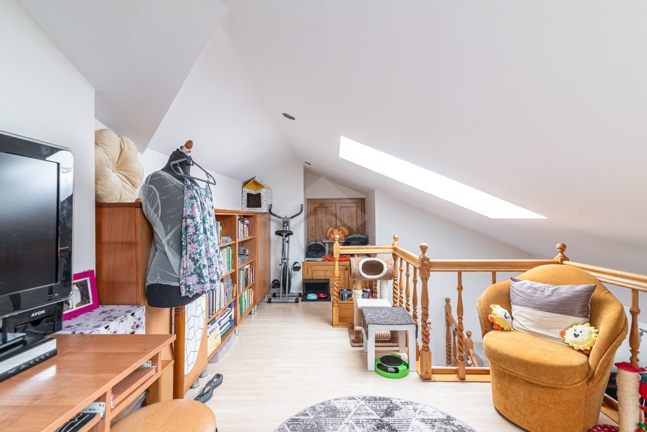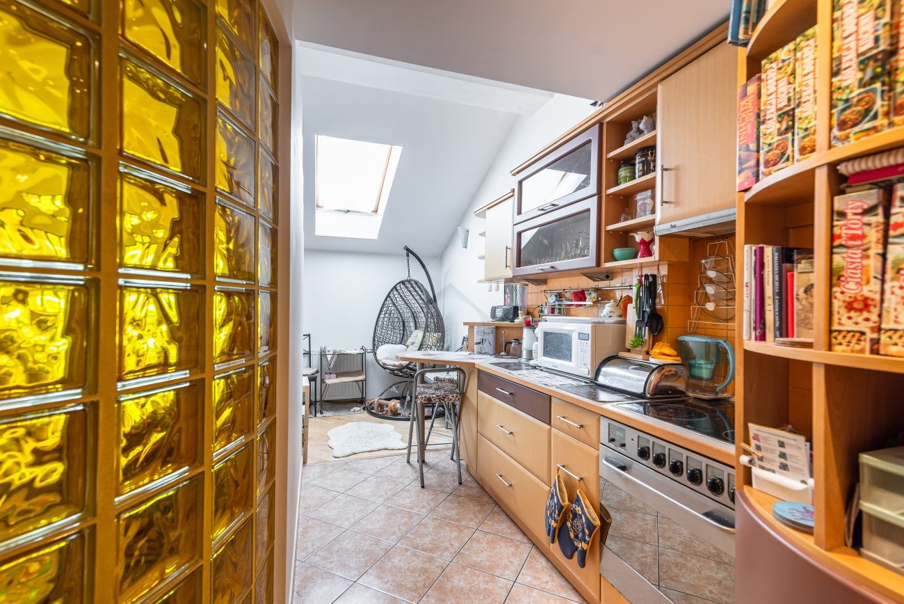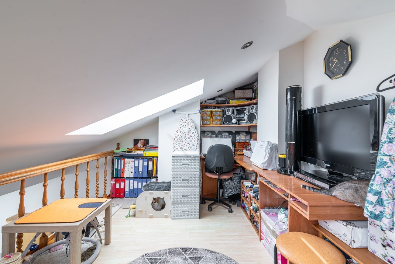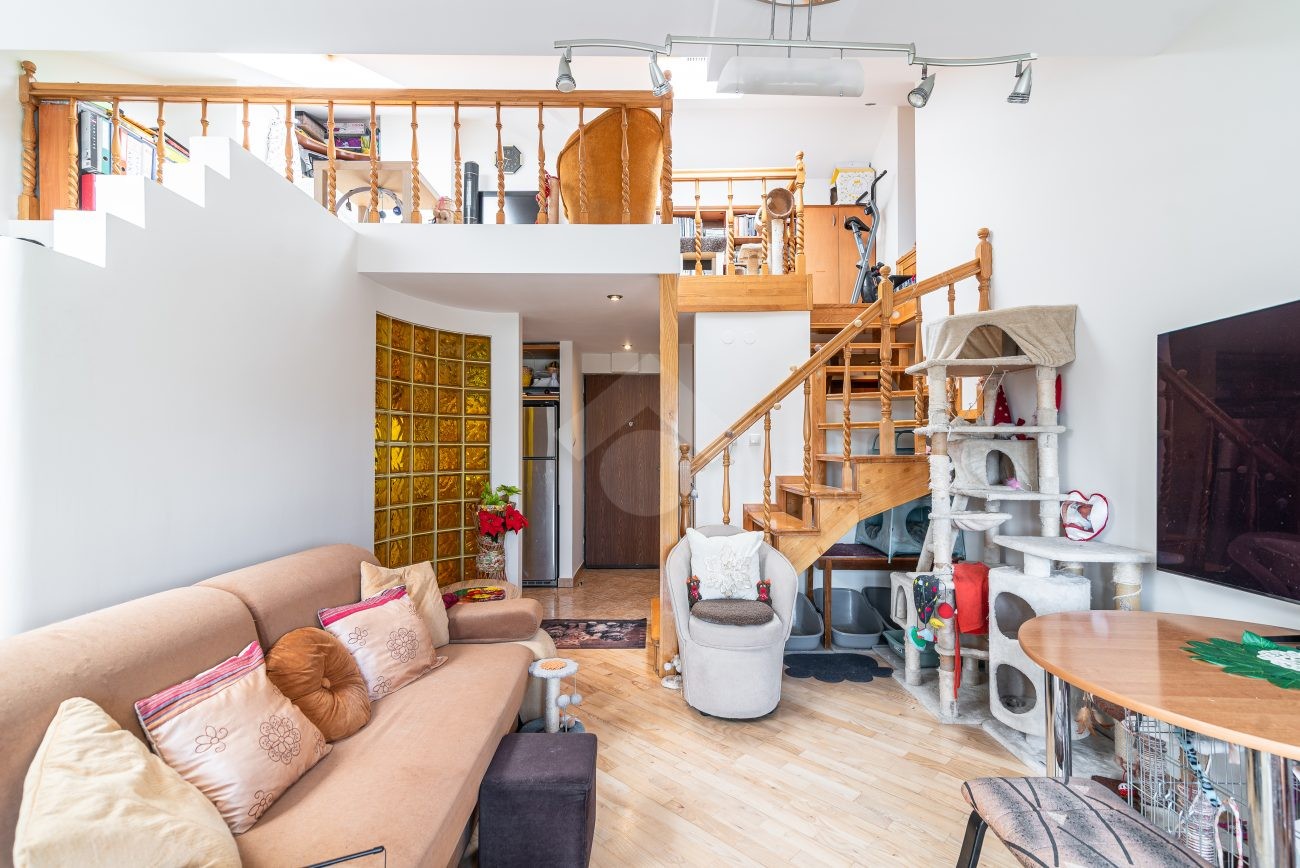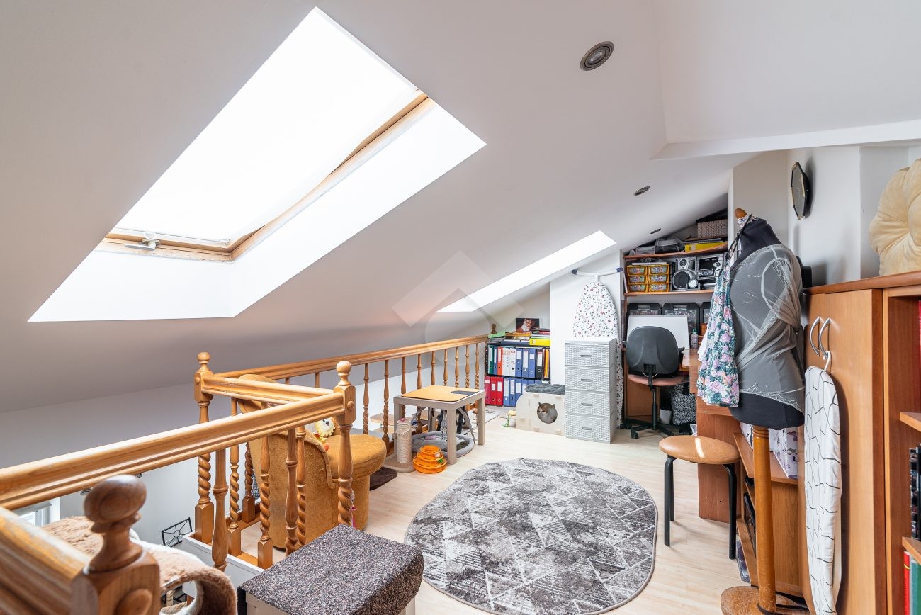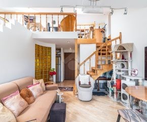 Mieszkanie składa się z salonu z aneksem kuchennym, sypialni, łazienki z WC, przedpokoju oraz dodatkowej przestrzeni na drugim poziomie, która może pełnić funkcję drugiej sypialni, gabinetu lub pokoju rekreacyjnego. Dzięki wschodniej ekspozycji oraz dużych dachowych oknach wnętrza są doskonale doświetlone przez cały dzień. Dodatkowym atutem jest balkon o powierzchni ok. 3 m².