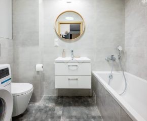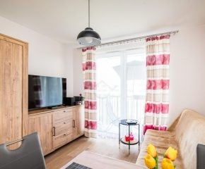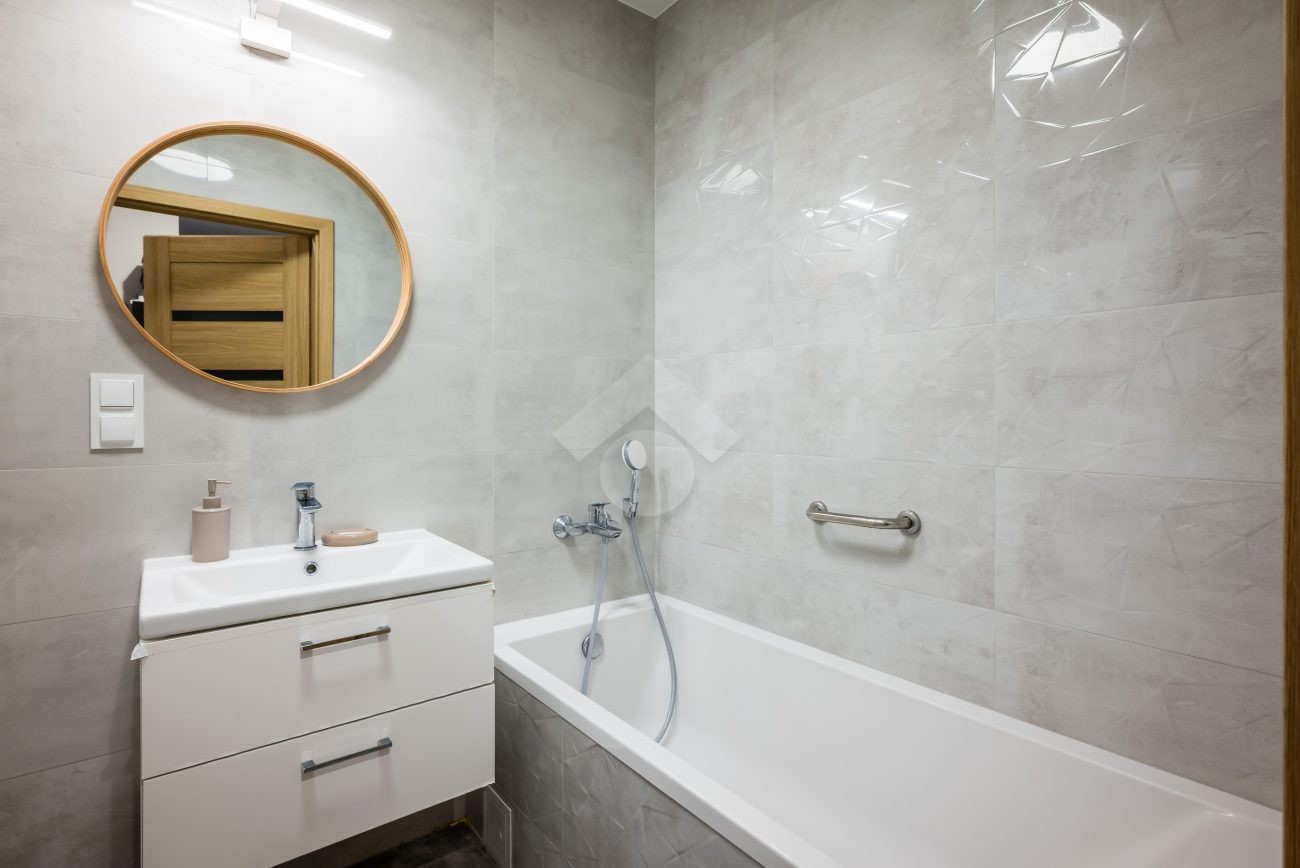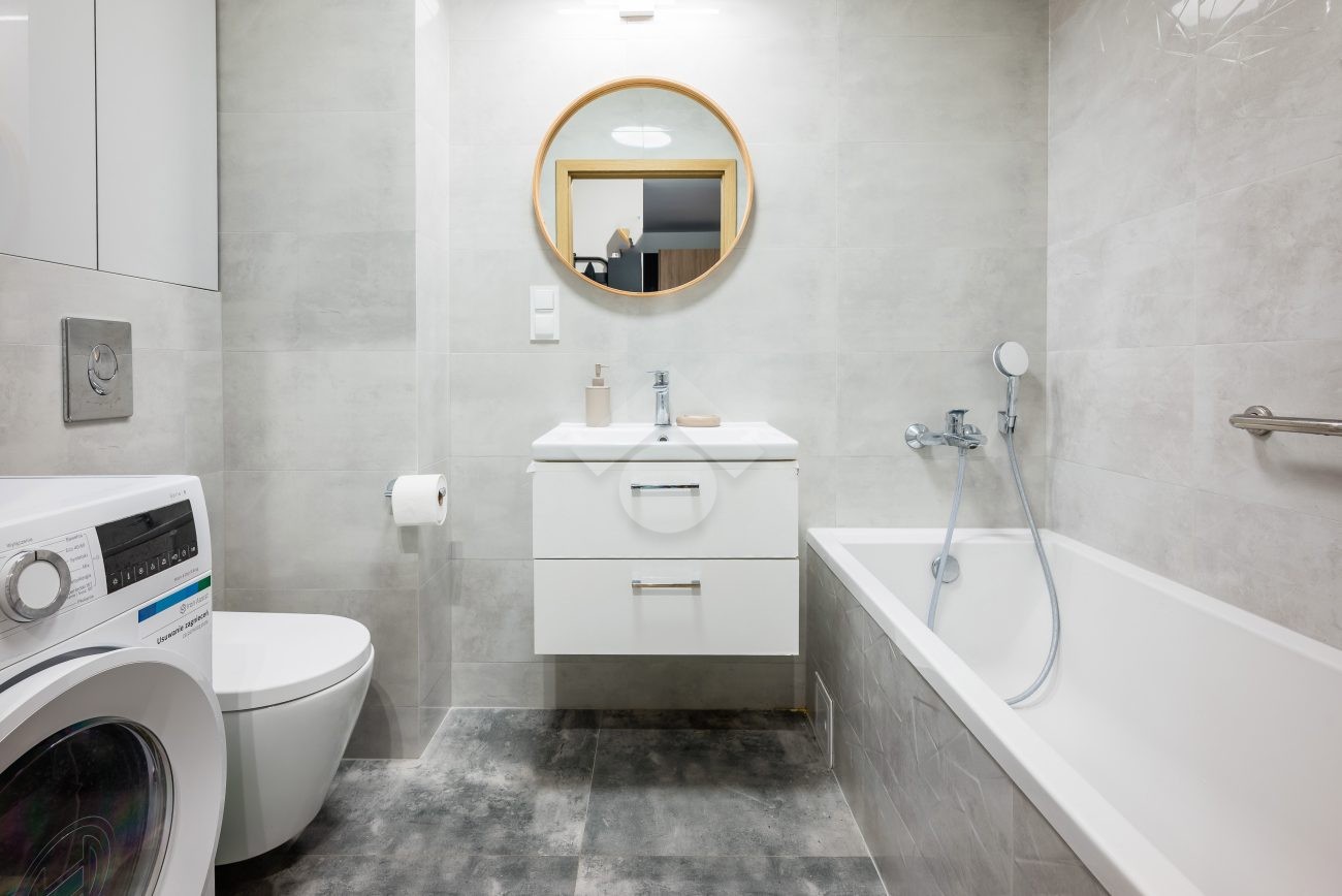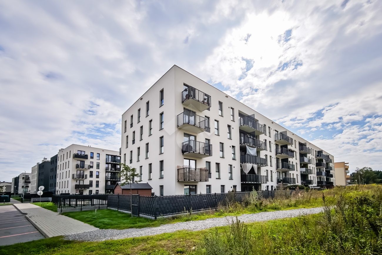 W łazience z WC znajduje się wanna, umywalka, toaleta oraz pralko – suszarka. Dodatkowym atutem jest balkon z ekspozycją zachodnią, który zapewnia doświetlenie wnętrza w godzinach popołudniowych. Do mieszkania przynależy również naziemne miejsce postojowe, co znacznie podnosi komfort codziennego użytkowania.