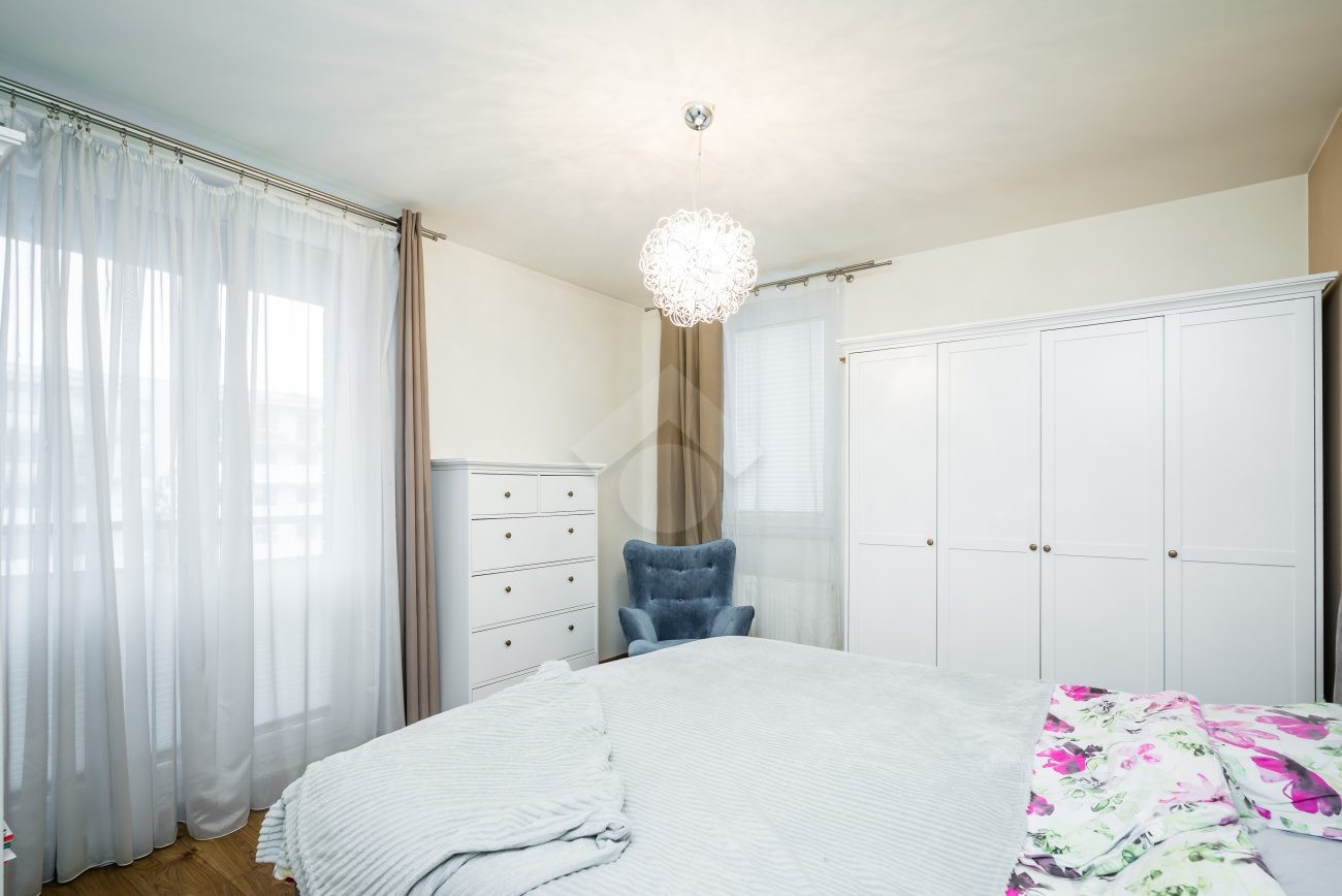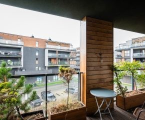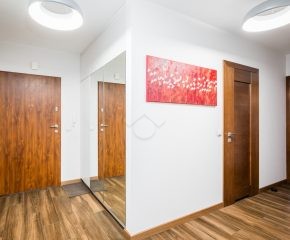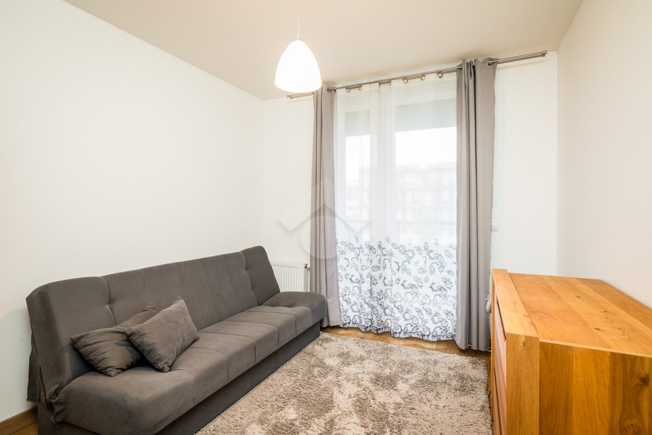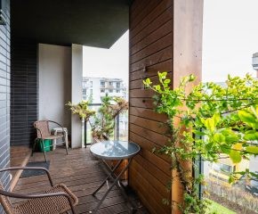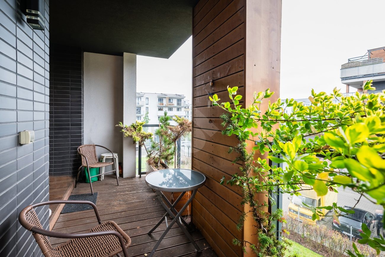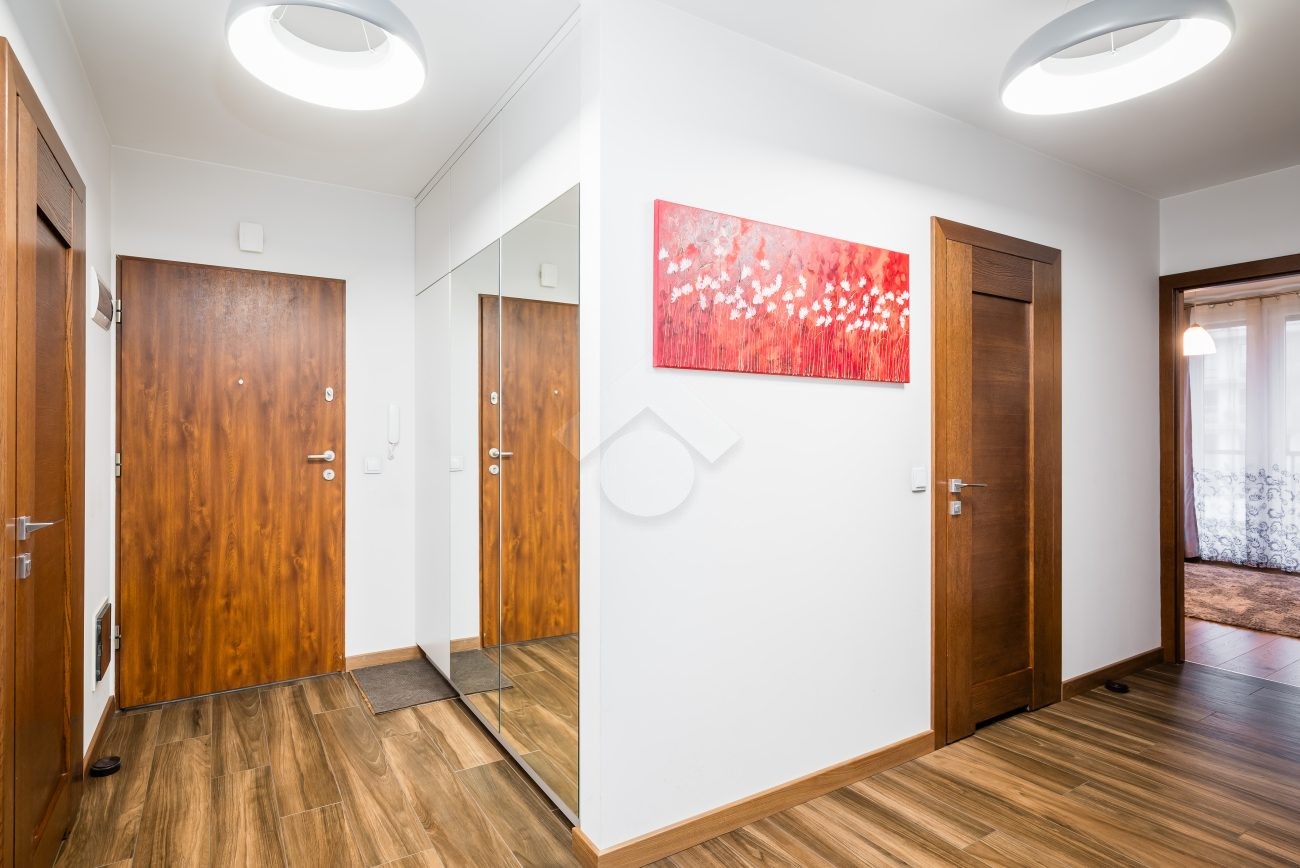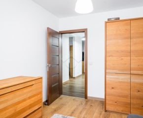 Mieszkanie utrzymane w bardzo dobrym stanie technicznym i wizualnym. Wykończone z użyciem wysokiej jakości materiałów – w salonie i sypialniach na podłodze znajduje się drewno, natomiast w pozostałych pomieszczeniach płytki. Aneks kuchenny wyposażony jest w sprzęt AGD: piekarnik, mikrofalę, lodówkę, płytę indukcyjną marki Samsung oraz zmywarkę Candy 45 cm. Każda z sypialni posiada własny balkon z widokiem na zieleń, natomiast z salonu prowadzi wyjście na duży taras z miejscem do wypoczynku.