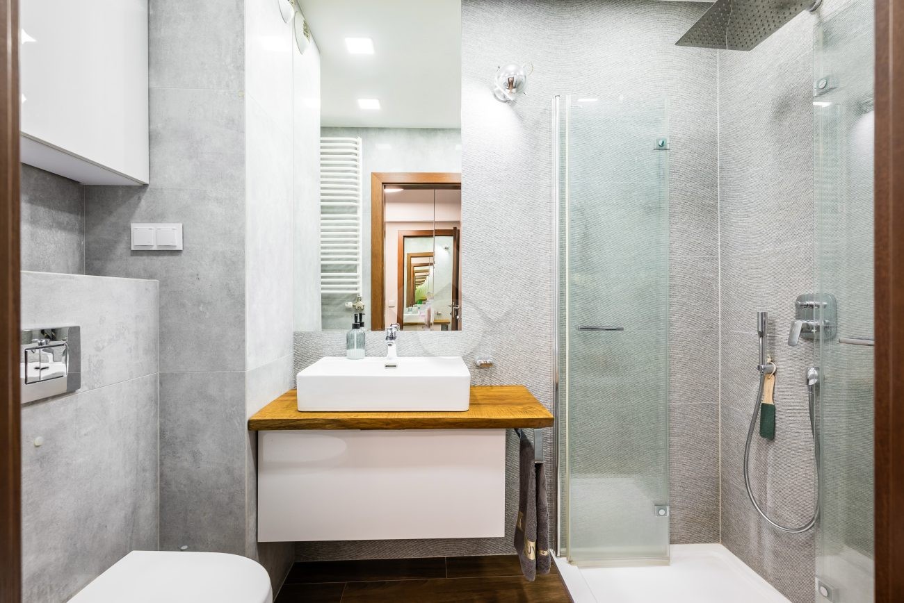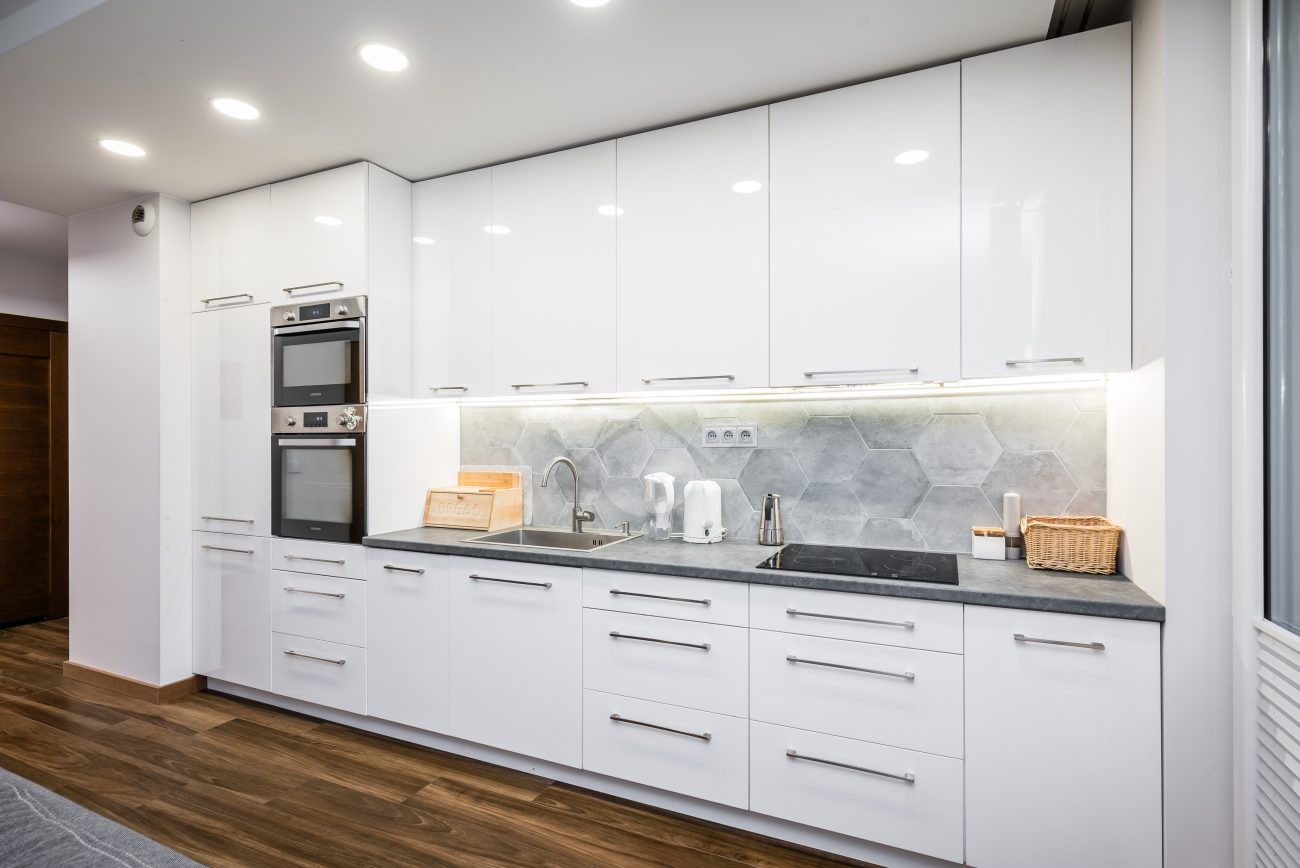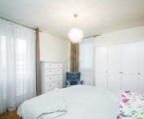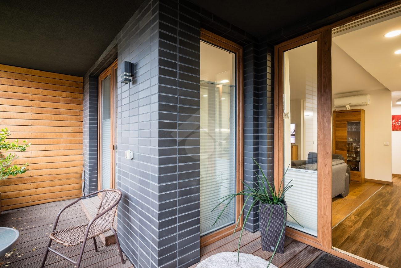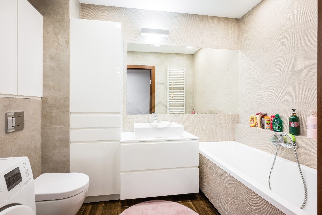 Mieszkanie utrzymane w bardzo dobrym stanie technicznym i wizualnym. Wykończone z użyciem wysokiej jakości materiałów – w salonie i sypialniach na podłodze znajduje się drewno, natomiast w pozostałych pomieszczeniach płytki. Aneks kuchenny wyposażony jest w sprzęt AGD: piekarnik, mikrofalę, lodówkę, płytę indukcyjną marki Samsung oraz zmywarkę Candy 45 cm. Każda z sypialni posiada własny balkon z widokiem na zieleń, natomiast z salonu prowadzi wyjście na duży taras z miejscem do wypoczynku.