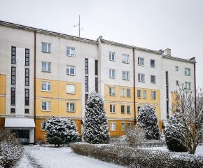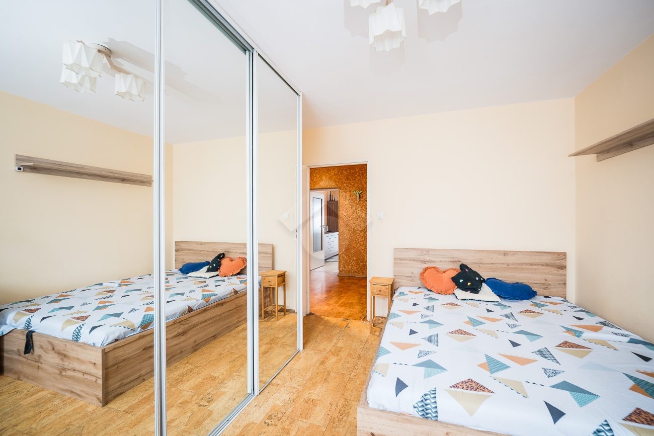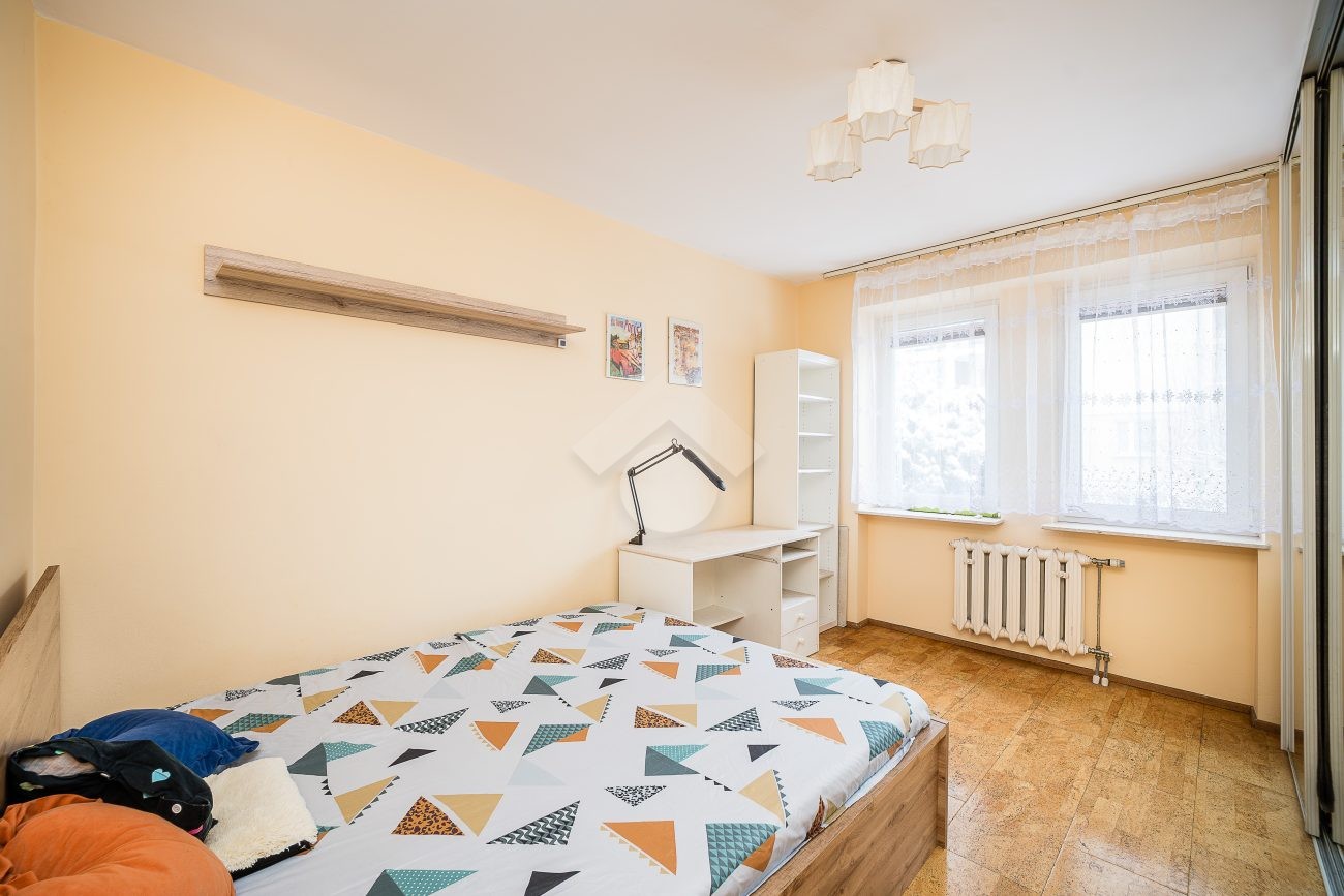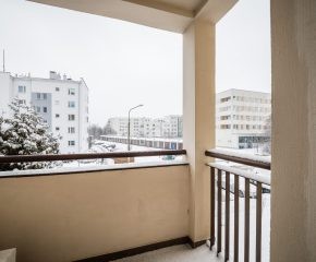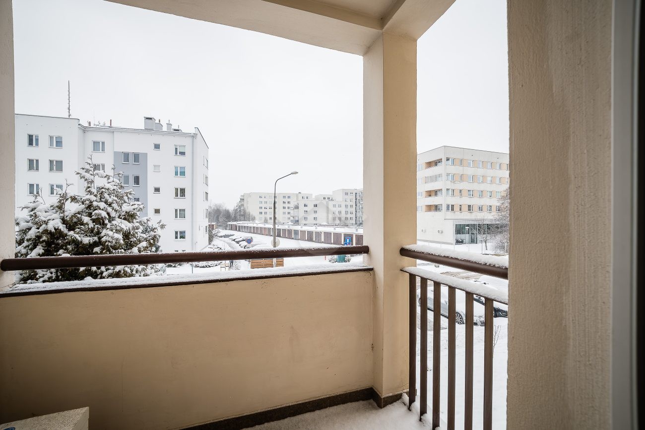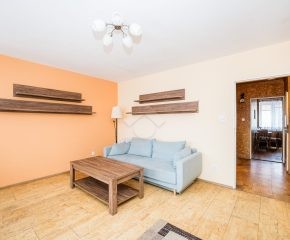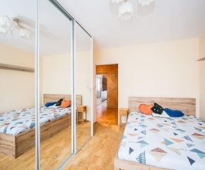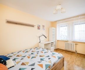 Większy pokój o powierzchni ok. 24 m² wyposażony został w nowe meble wypoczynkowe, w tym trzyosobową, rozkładaną sofę, oraz posiada wyjście na balkon. Mniejszy pokój (ok. 12 m²) z widokiem na wewnętrzne podwórko osiedla został zaaranżowany jako sypialnia znajduje się w nim łóżko, funkcjonalna szafa oraz biurko.