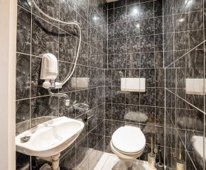 Łazienka wyposażona jest zarówno w wannę, jak i oddzielny prysznic. Toaleta stanowi osobne pomieszczenie. W przestronnym przedpokoju znajduje się wieszak na okrycia wierzchnie oraz pojemną szafkę na buty.