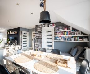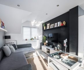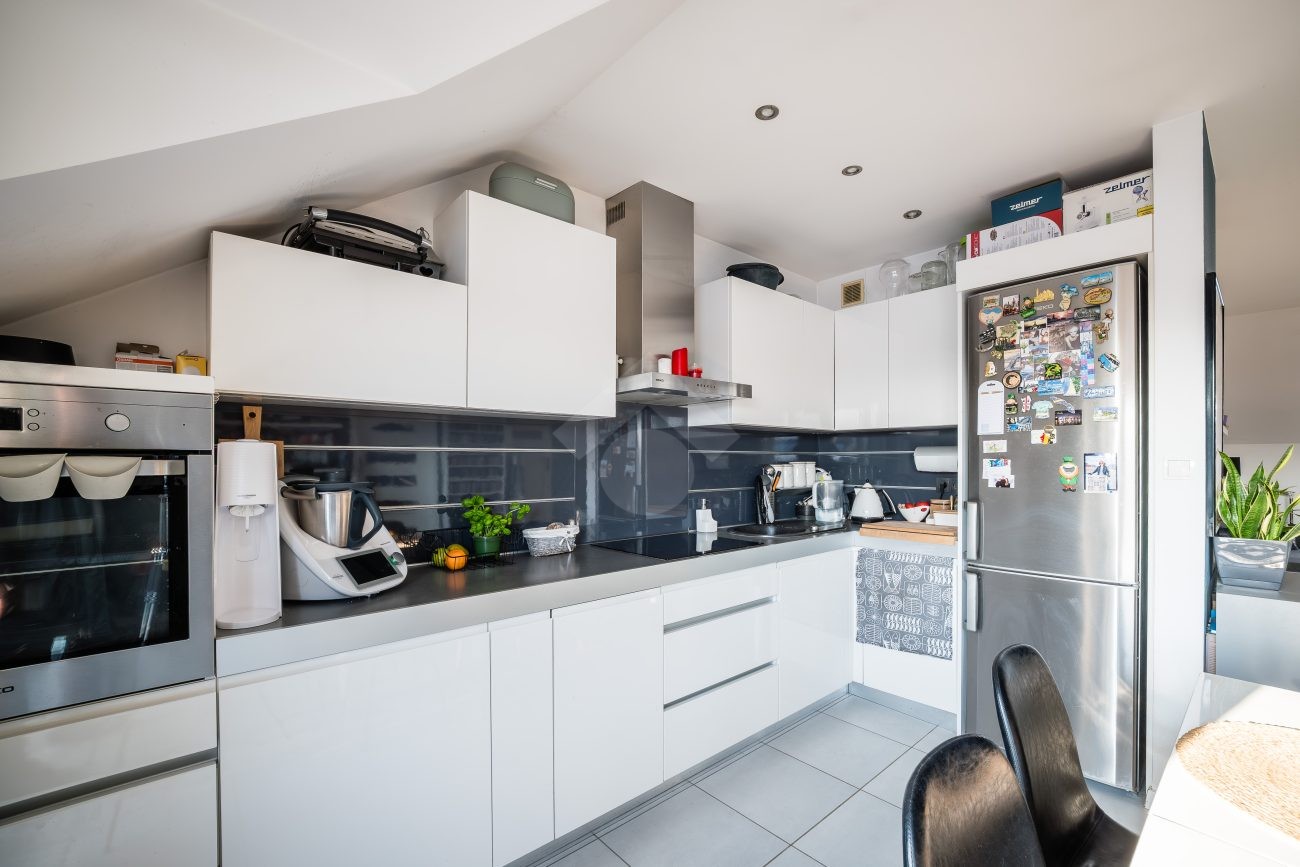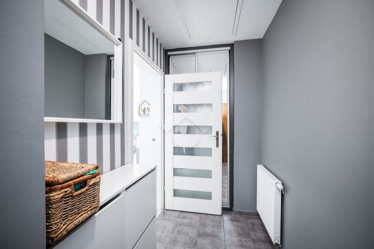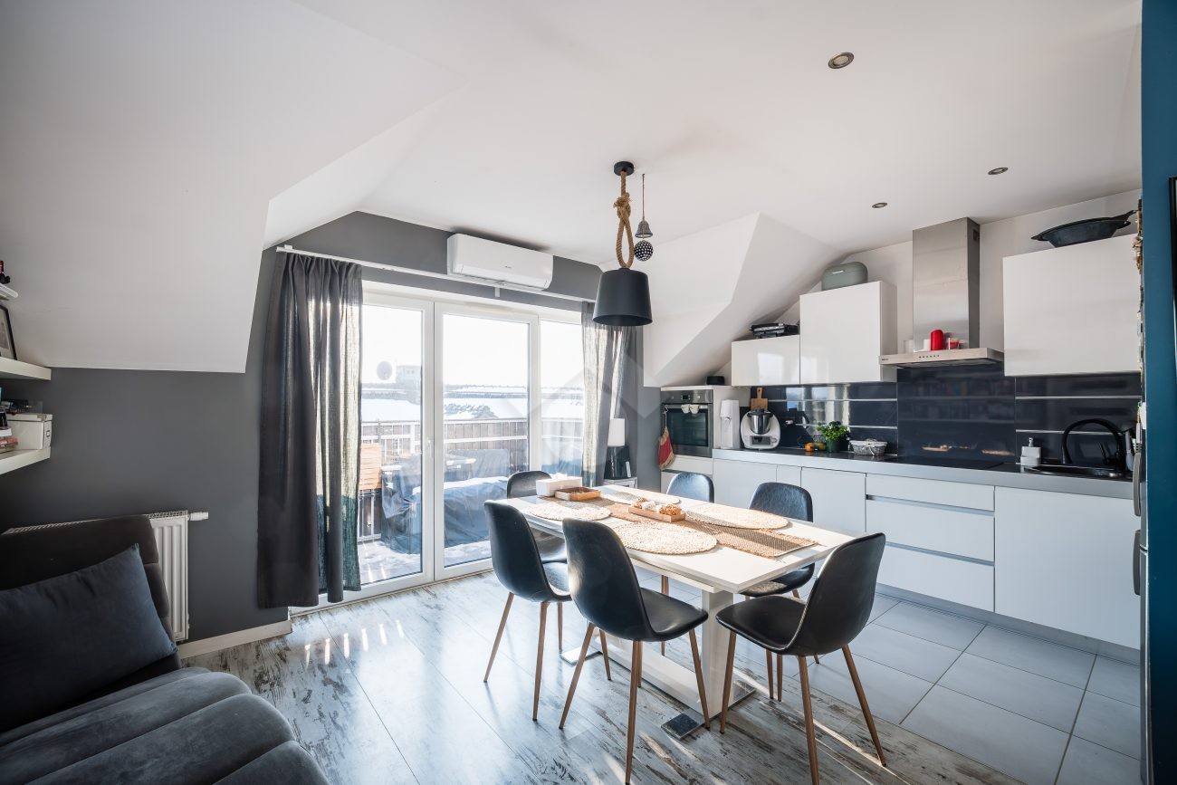 Aneks kuchenny wyposażony jest w zabudowę meblową oraz komplet sprzętu AGD, w tym piekarnik, płytę indukcyjną, zmywarkę, okap oraz lodówkę z zamrażarką. Na podłogach znajdują się panele, natomiast w łazience, przedpokoju oraz części kuchennej położono płytki. Ogrzewanie centralne gazowe pochodzi z osiedlowej kotłowni. Dodatkowo do dyspozycji jest strych, który zapewnia dodatkowe miejsce do przechowywania.