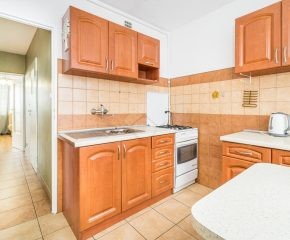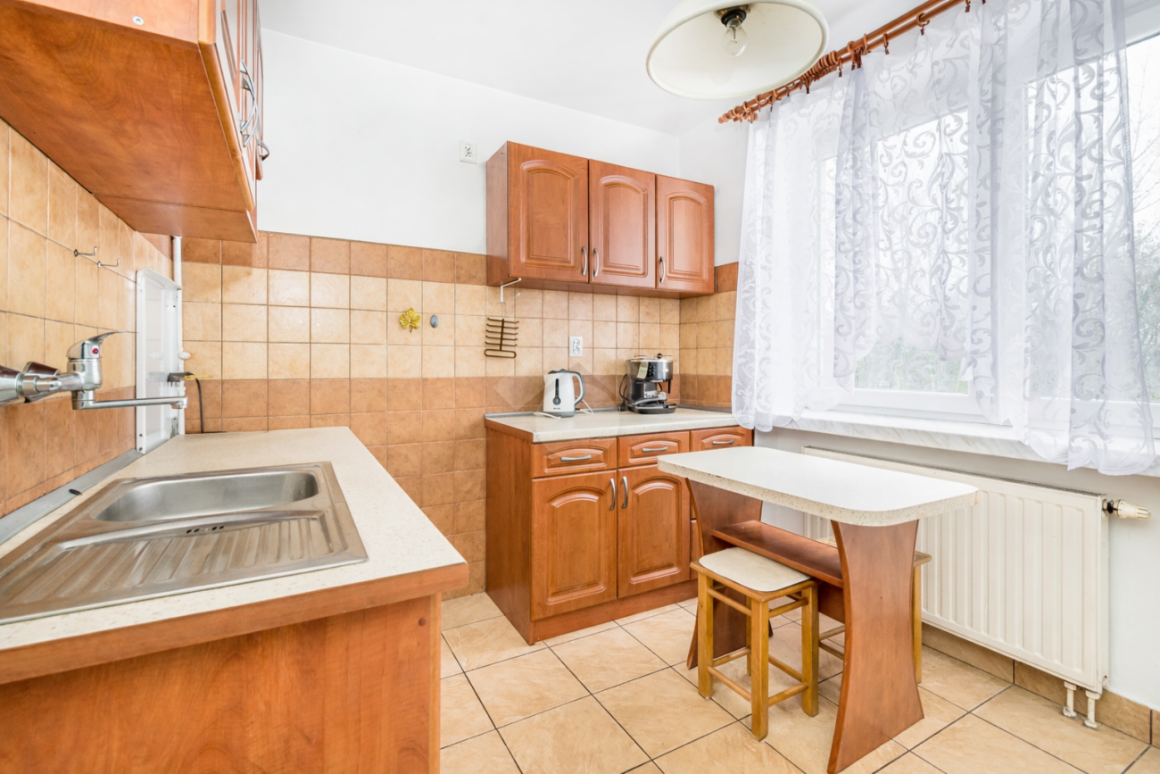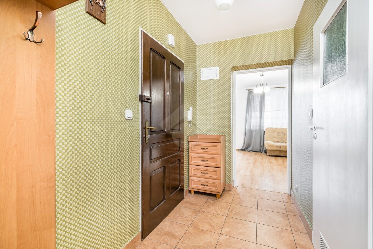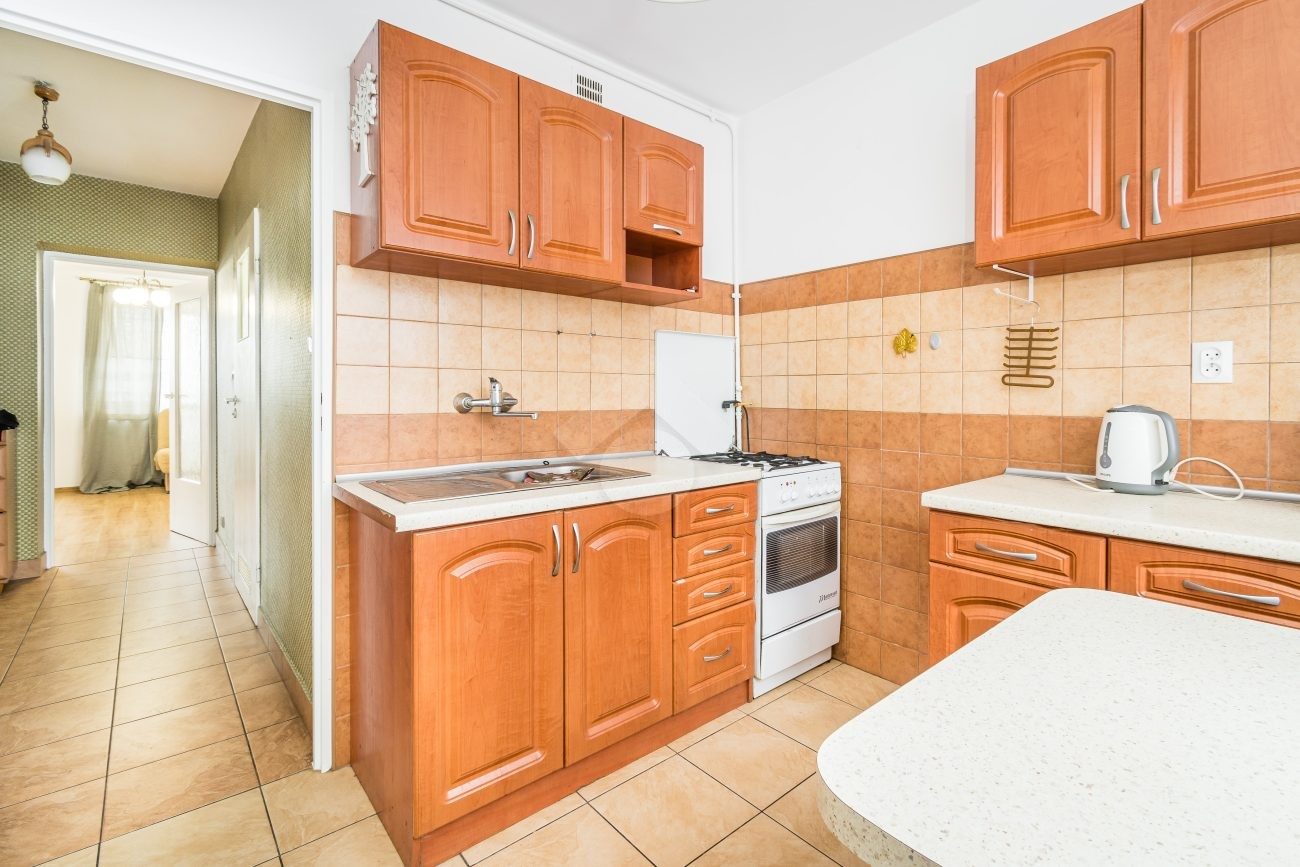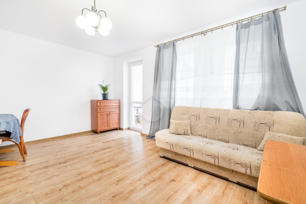 Pokój wyposażony jest w rozkładaną sofę, stół z krzesłami, pojemną szafę oraz dwie komody. W kuchni znajduje się zabudowa kuchenna wraz z piekarnikiem, płytą gazową oraz lodówką z zamrażarką. Łazienka wyposażona jest w prysznic, umywalkę, pralkę oraz toaletę. Mieszkanie dostępne od zaraz. Dla mieszkańców osiedla dostępne są ogólnodostępne miejsca postojowe.