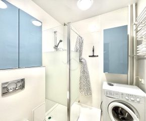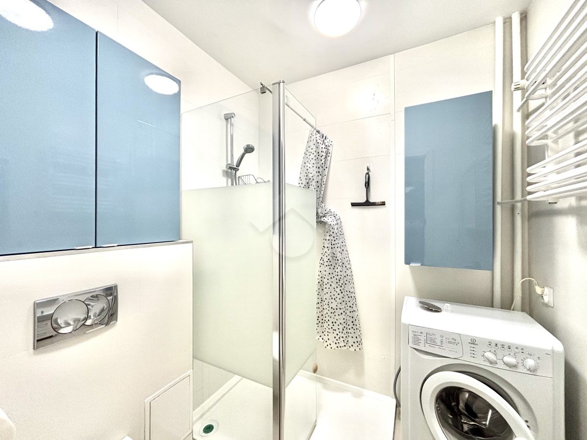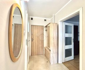 One of the main advantages of the apartment is its location — the property is situated close to the city center, near Kraków’s main transport routes, as well as the main bus station.