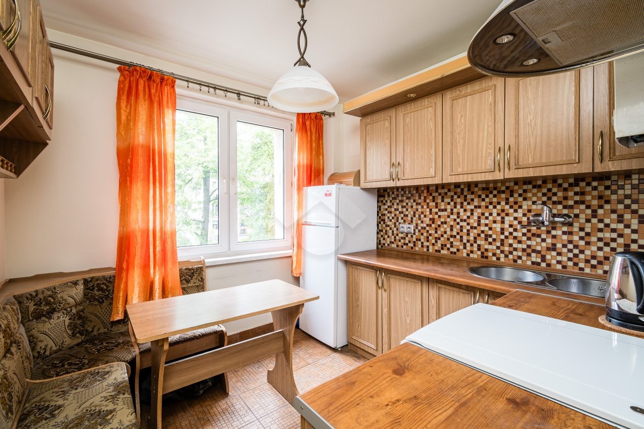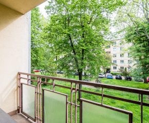Mieszkanie składa się z dwóch nieprzechodnich pokoi, dużej loggi z widokiem na zieleń, osobnej jasnej kuchni, przedpokoju oraz łazienki. Do mieszkania należy tez piwnica, a jako część wspólna dla trzech mieszkań przynależna jest również suszarnia.