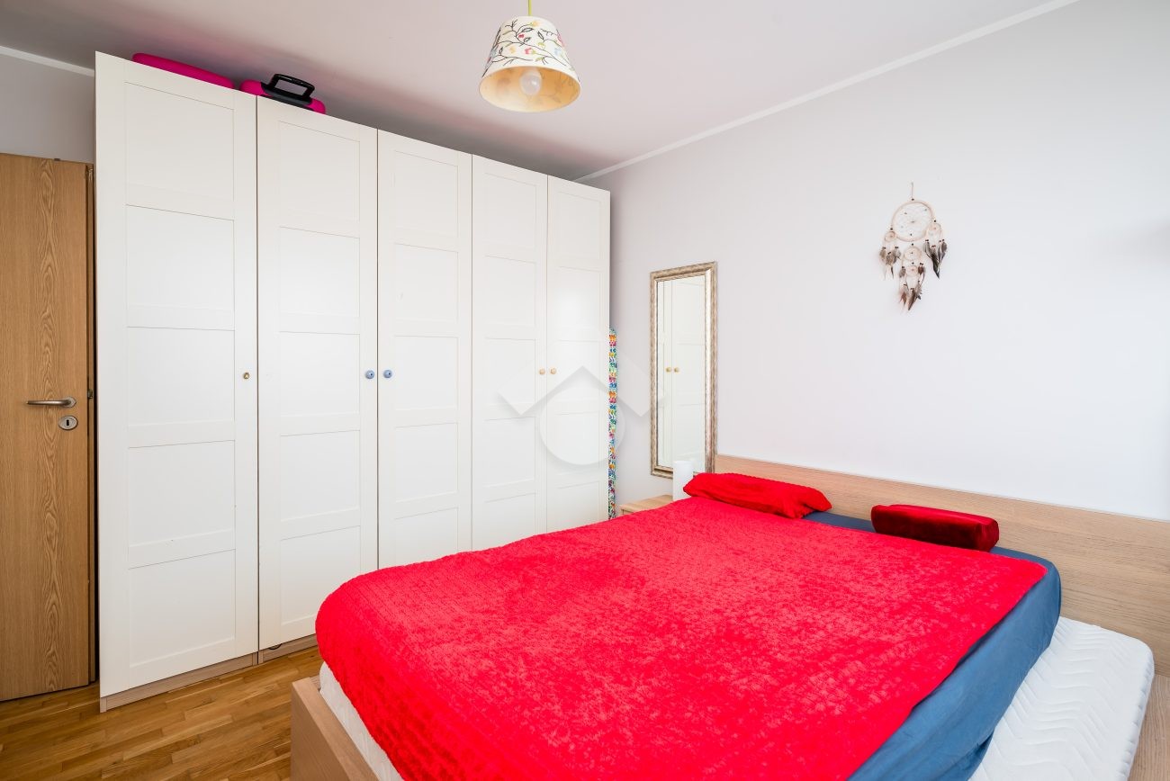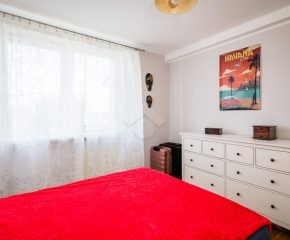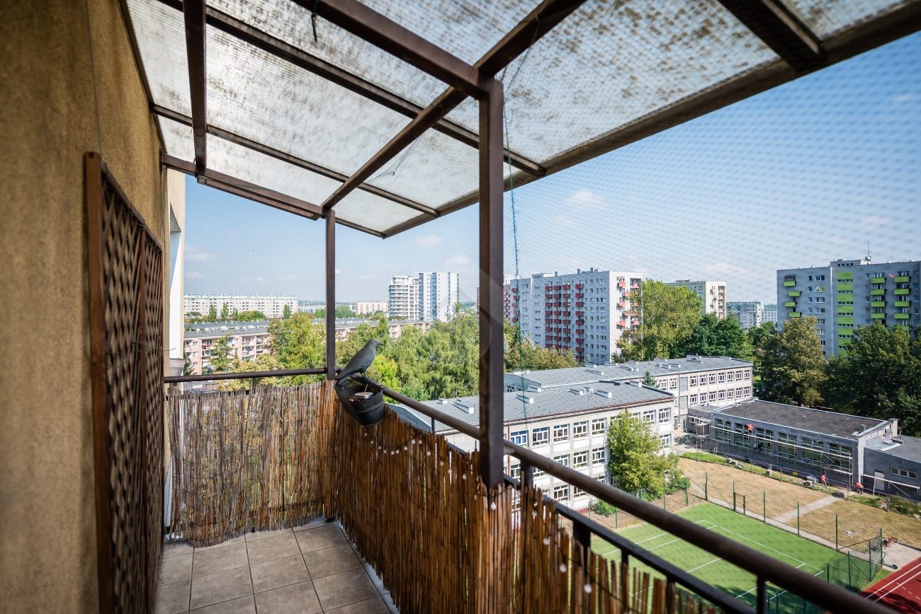 Mieszkanie składa się z przestronnego salonu z aneksem kuchennym oraz wyjściem na balkon, osobnej dużej sypialni, łazienki z WC, sporego przedpokoju oraz korytarza. Przestrzeń jest jednym z głównych atutów tego lokalu.