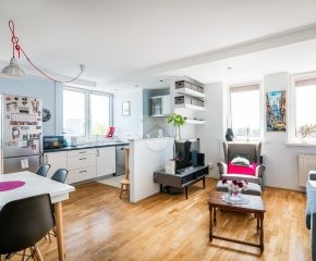 Zasługą południowo-wschodniej ekspozycji oraz dużej ilości okien jest jasna i dobrze oświetlona przestrzeń.