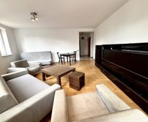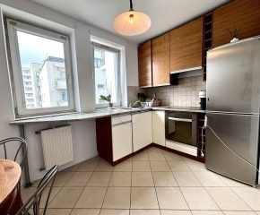 Mieszkanie składa się z przestronnego salonu, osobnej jasnej kuchni, dwóch sypialni, łazienki wyposażonej w pralkę oraz oddzielnego WC. Lokal jest w pełni umeblowany – znajduje się w nim miedzy innymi lodówka oraz komplet mebli, co pozwala na komfortowe zamieszkanie od razu.