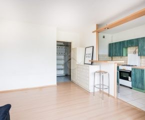 Mieszkanie składa się z dużego, jasnego pokoju z wyjściem na balkon, przedpokoju z szafami wnękowymi, łazienki z WC, oraz kuchni z jadalnią.