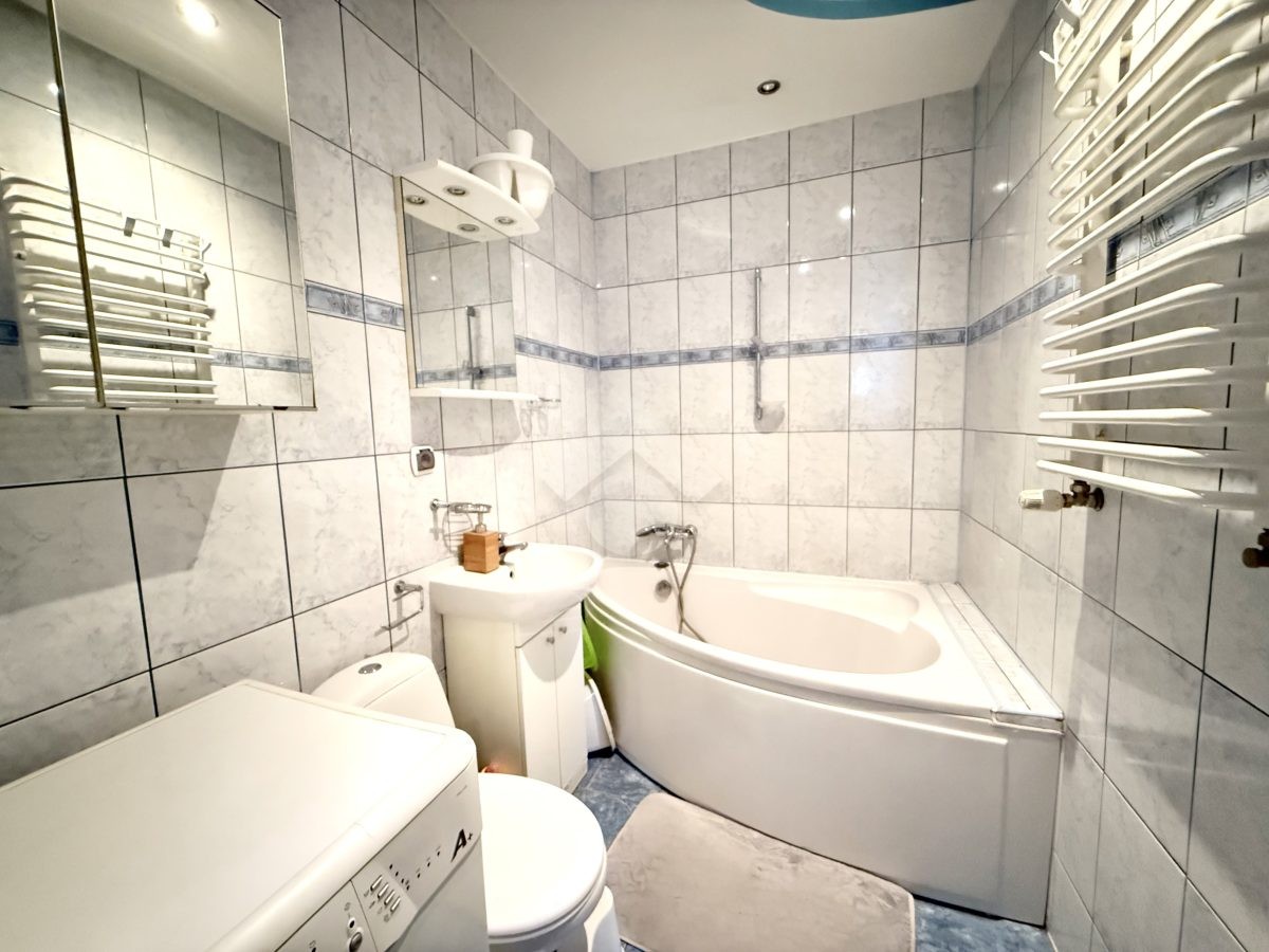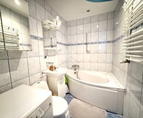 Lokal składa się przestronnej sypialni z dużym łóżkiem oraz drugiego pokoju z wyjściem na balkon, z którego rozpościera się piękny widok. W mieszkaniu znajduje się również osobna jasna kuchnia, która jest w pełni wyposażona, przedpokój oraz łazienka z wanna.