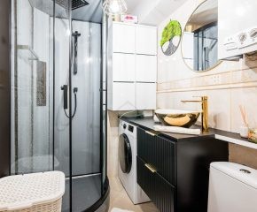 Do mieszkania należy również piwnica, która zapewnia dodatkową przestrzeń do przechowywania. Dla mieszkańców wydzielone są również pomieszczenia pełniące funkcję suszarni oraz wózkowni.