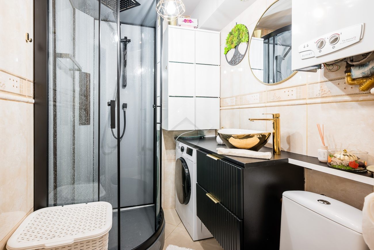Ogrzewanie jest miejskie, ciepła woda z piecyka gazowego.