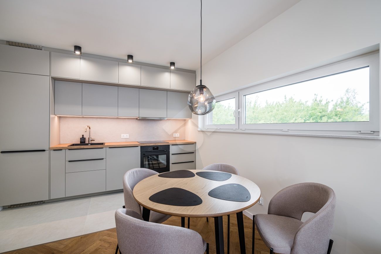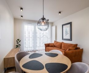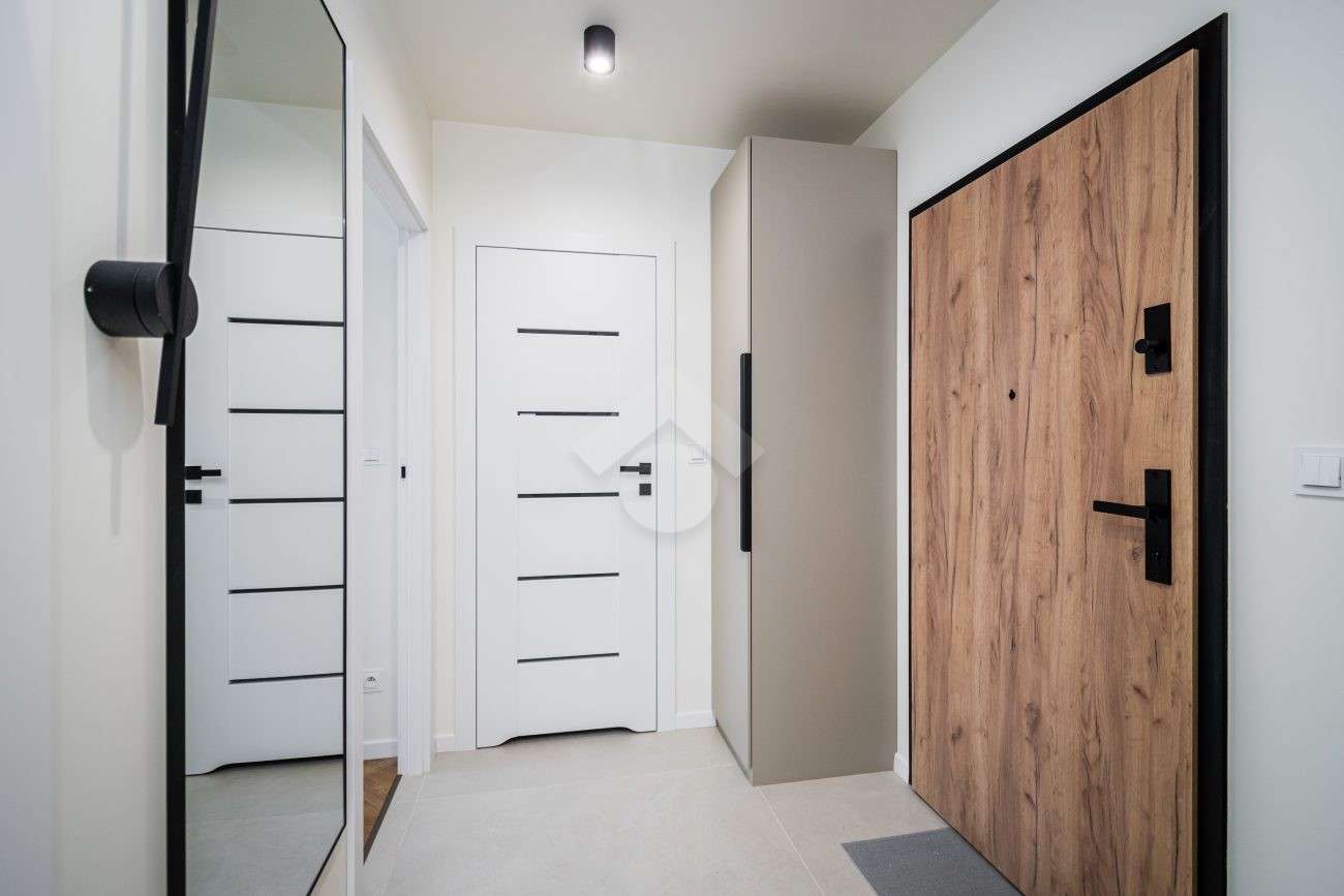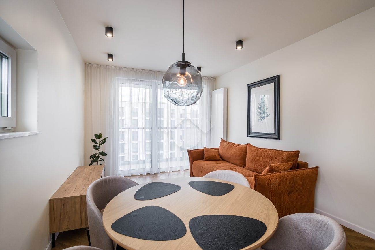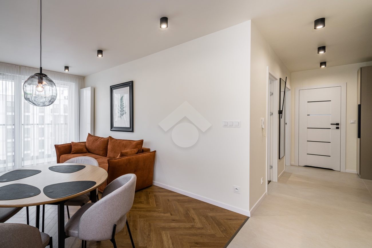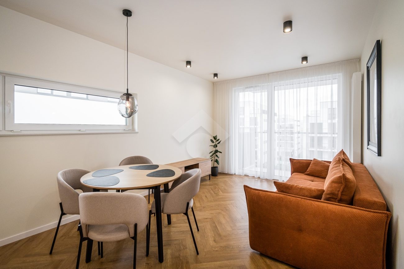 Stan nieruchomości: WYSOKI STANDARD – Mieszkanie zostało urządzone w bardzo dobrym standardzie, z wykorzystaniem materiałów wysokiej jakości. W aneksie kuchennym znajdują się meble w zabudowie oraz pełne wyposażenie AGD: zmywarka, piekarnik, płyta indukcyjna i lodówko-zamrażarka. Salon wyposażony jest w rozkładaną kanapę, stół z czterema krzesłami oraz szafkę RTV. W sypialni znajduje się dwuosobowe łóżko, pojemna szafa, dywan oraz dekoracyjne obrazy. Łazienka została wyposażona w kabinę prysznicową, umywalkę z szafką, meble w zabudowie oraz pralki. W przedpokoju zamontowano dwie duże szafy, które zapewniają dodatkową przestrzeń do przechowywania. Ogrzewanie i ciepła woda pochodzą z sieci miejskiej. Mieszkanie posiada dwustronną ekspozycję – północno-wschodnią – co zapewnia doskonałe doświetlenie wnętrz przez cały dzień.