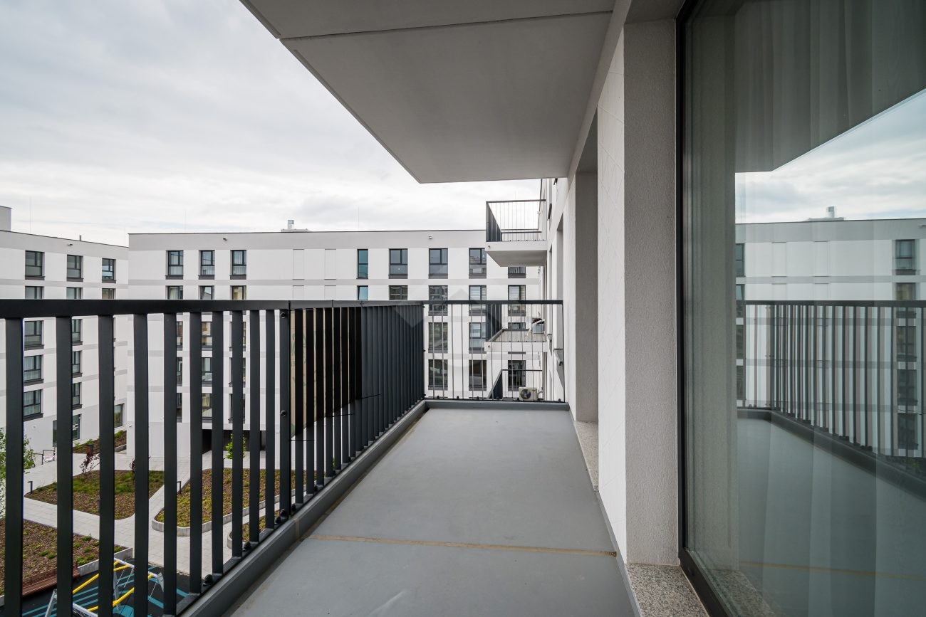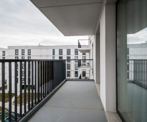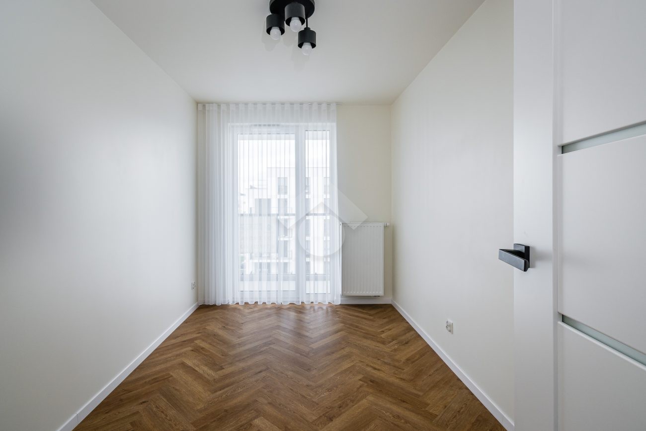 Dodatkowym atutem mieszkania jest obszerny balkon o powierzchni 9,15 m², z wyjściem zarówno z salonu, jak i z jednego z pokoi.