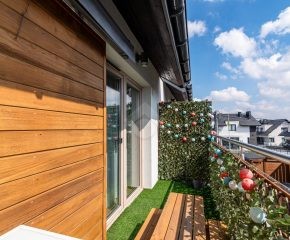 Dodatkowo do mieszkania przynależą dwa naziemne miejsca postojowe bezpośrednio przy budynku oraz 2 balkony.