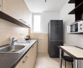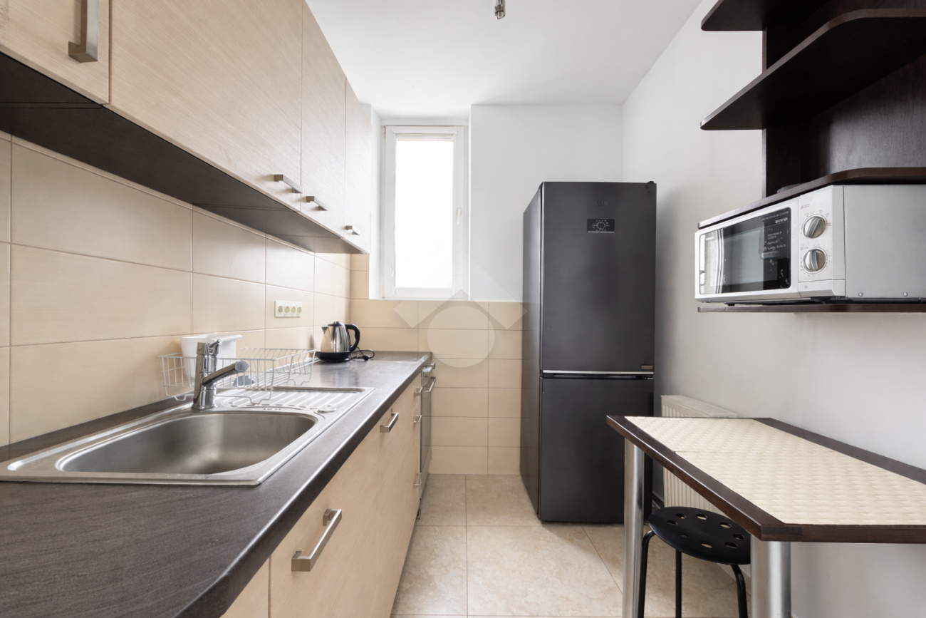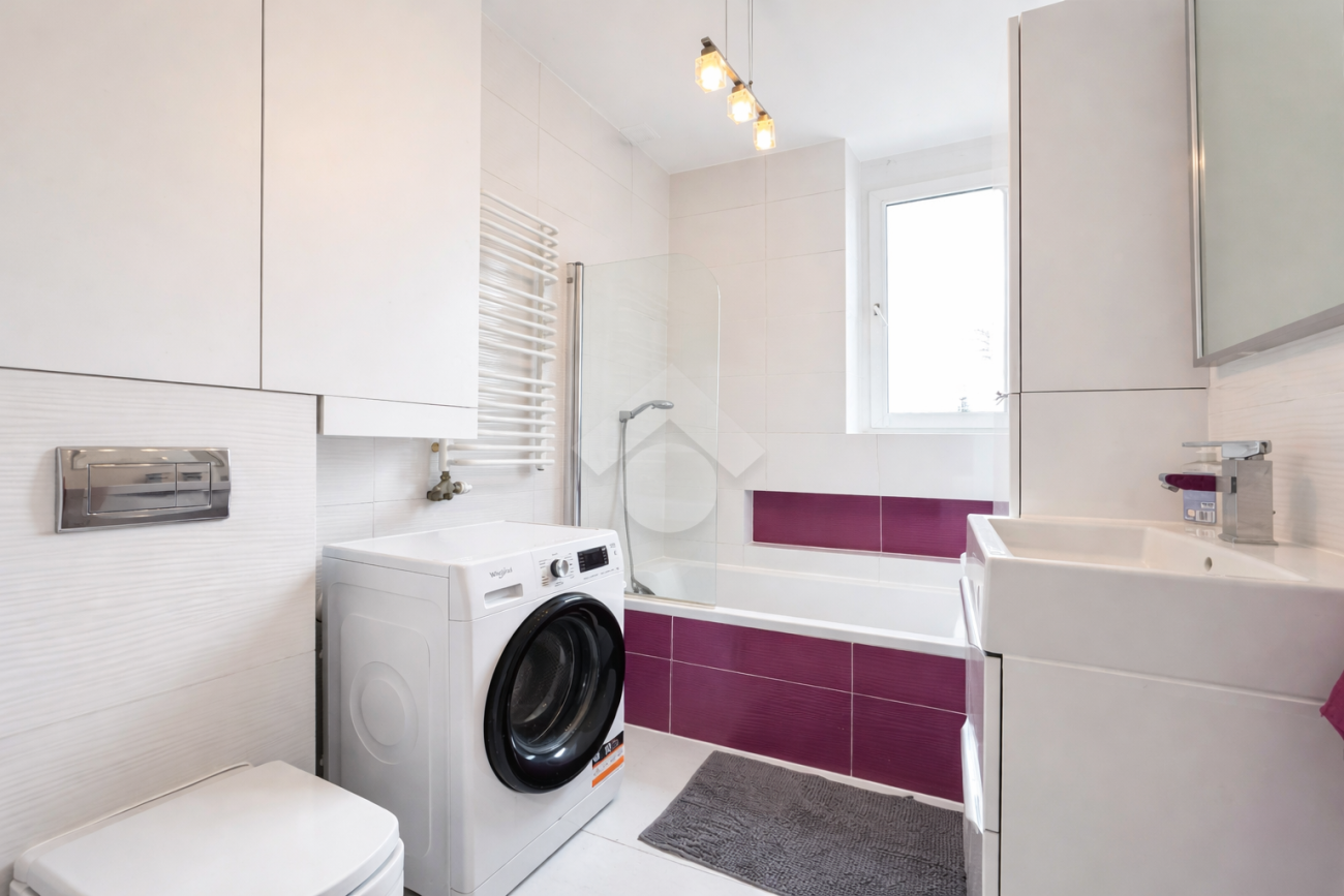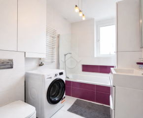 Stan mieszkania: Bardzo dobry. W kuchni zabudowa kuchenna na wymiar, wraz ze sprzętami AGD, w tym lodówka, piekarnik, płyta elektryczna, mikrofalówka. W łazience znajduje się wanna,  pralka, umywalka oraz WC. Mieszkanie na dwie strony, bardzo słoneczne.