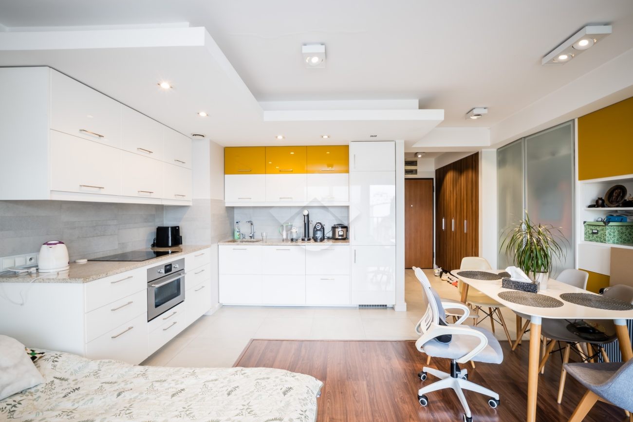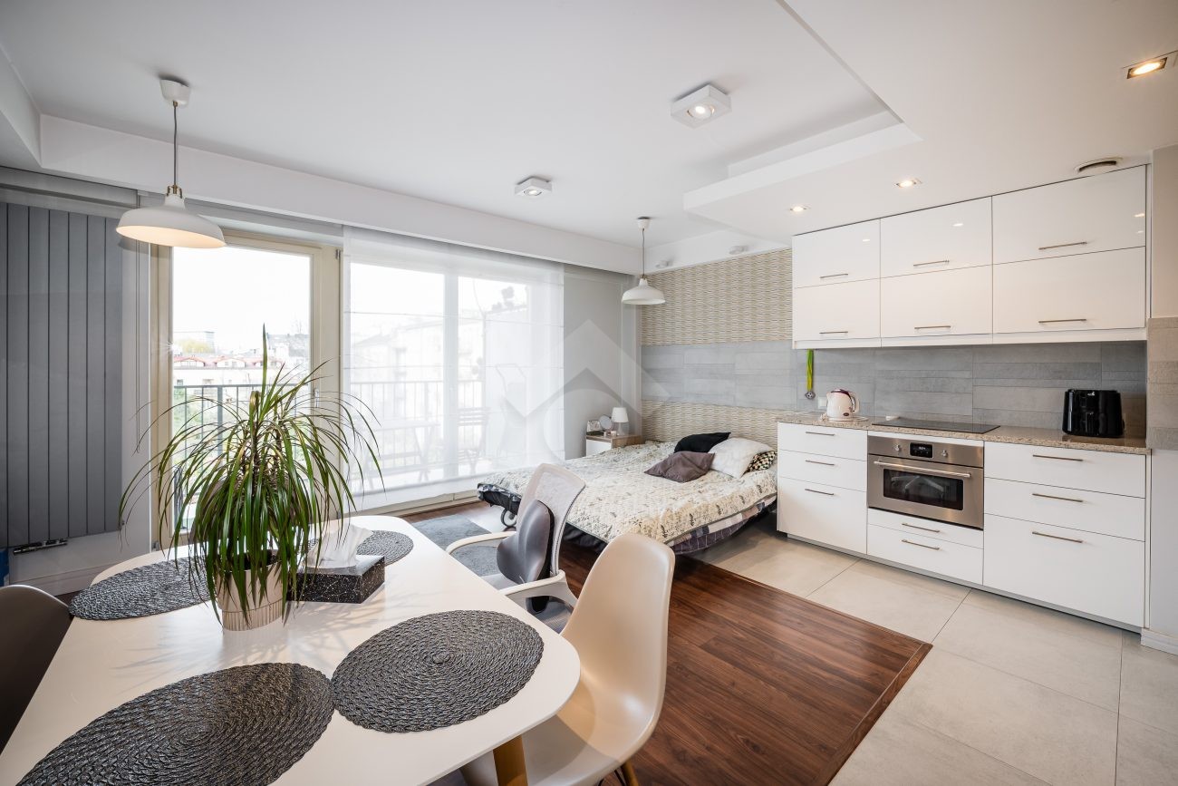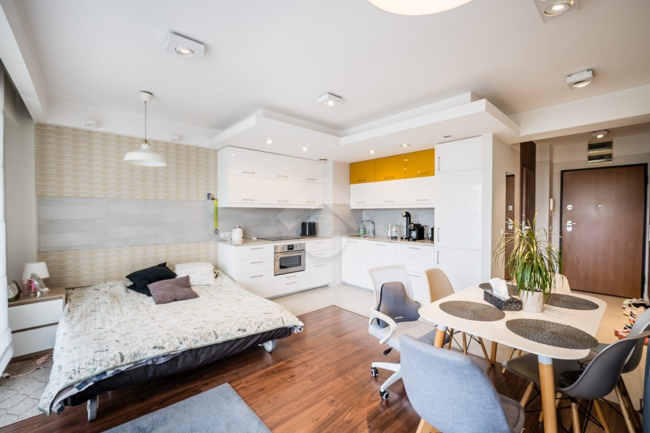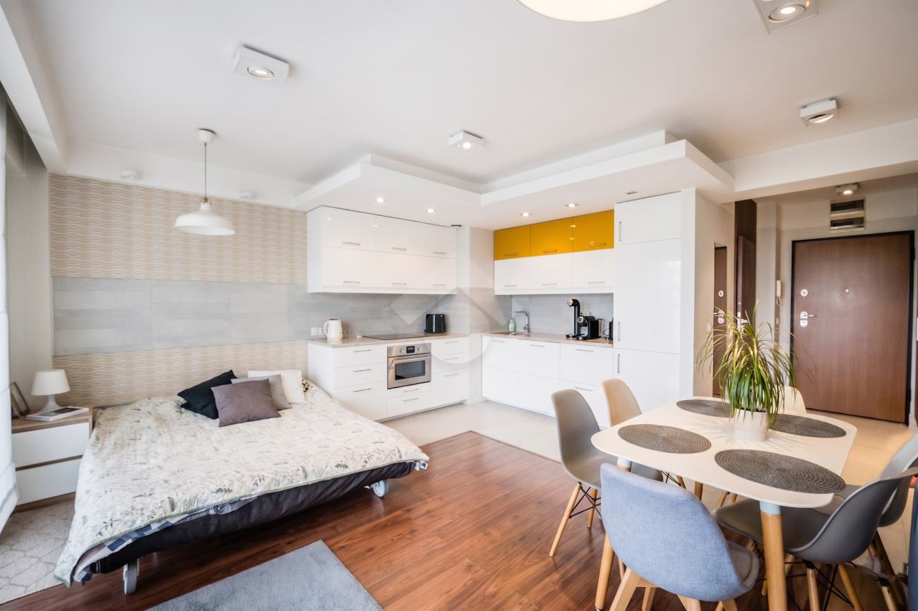 Nieruchomość: Mamy przyjemność przedstawić Państwu na sprzedaż kawalerkę o powierzchni 33,76 m², położona na czwartym piętrze w nowoczesnym apartamentowcu z 2014 roku.