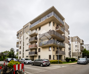 Dodatkowym atutem jest ogrodzone osiedle, a parking wokół budynku dostępny jest wyłącznie dla mieszkańców.
