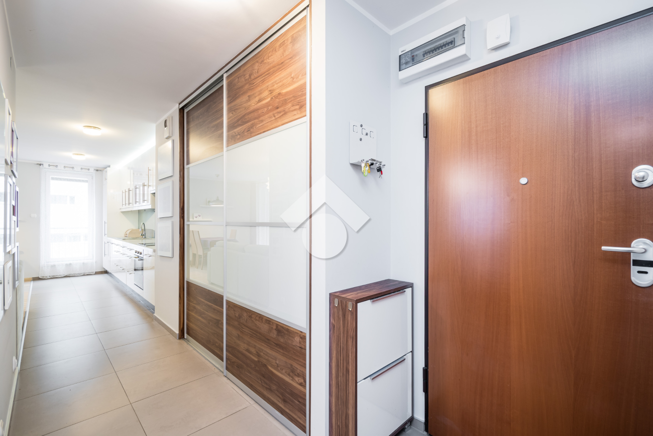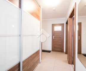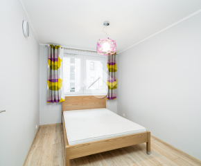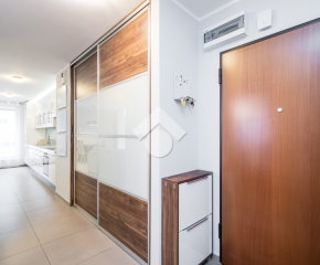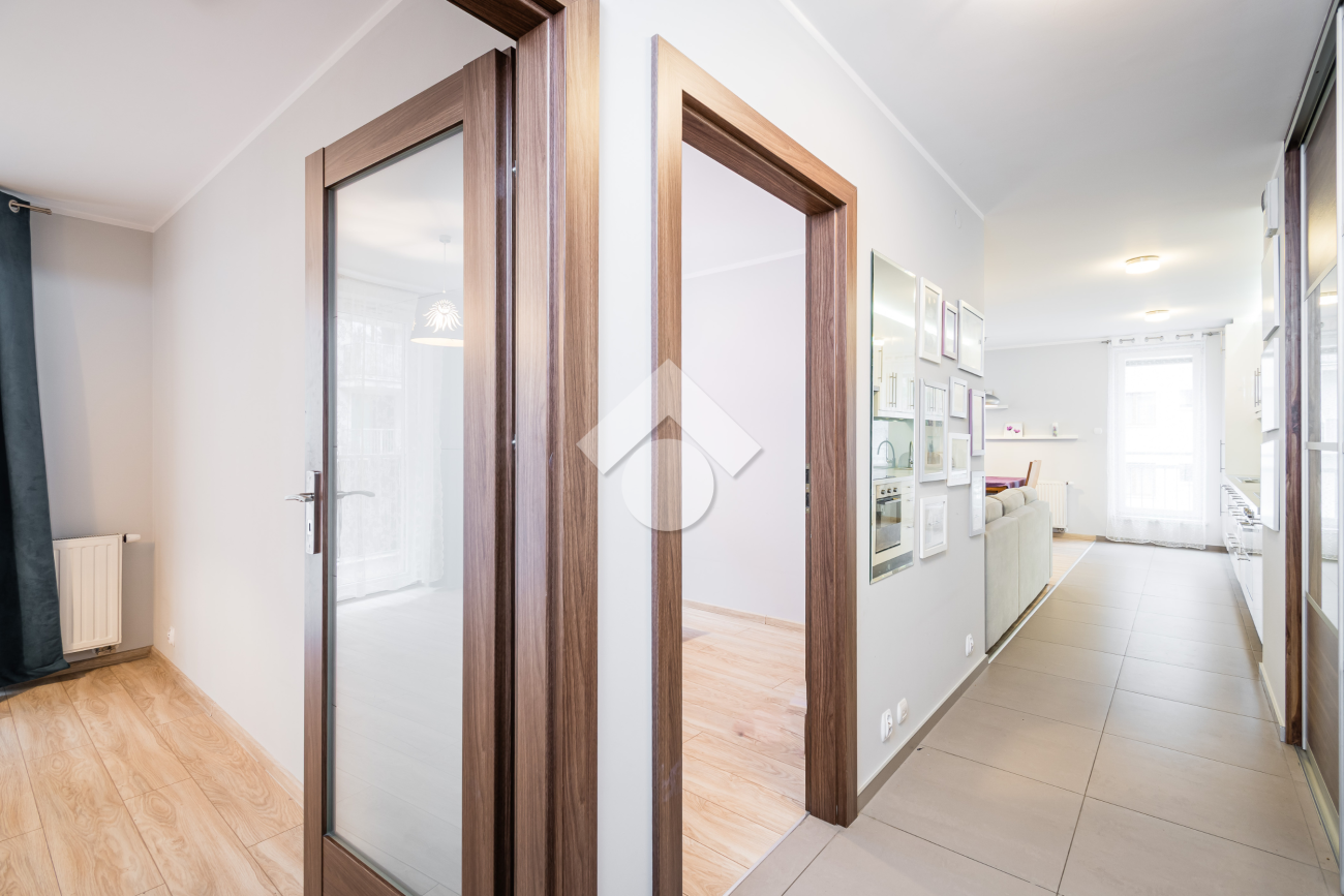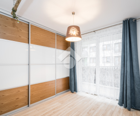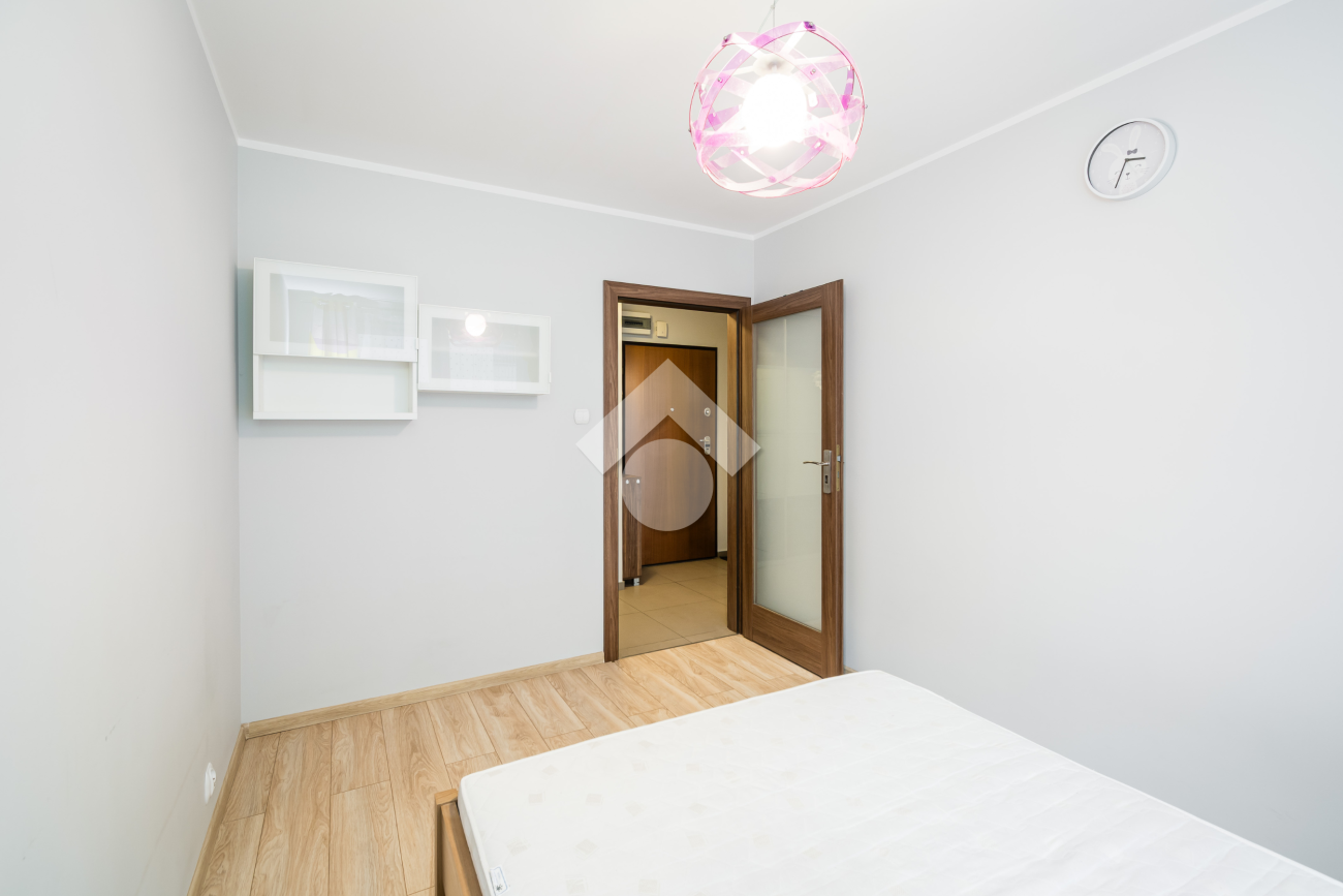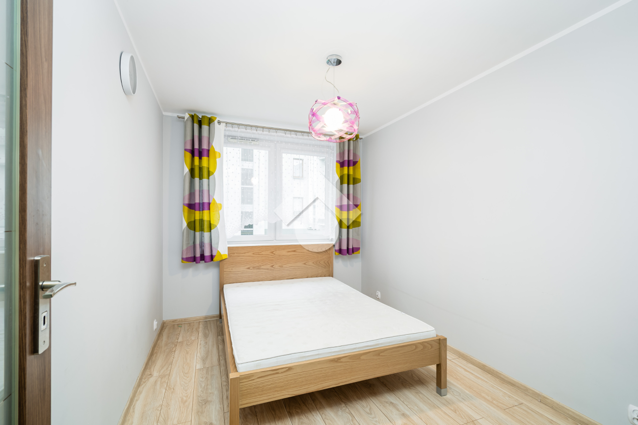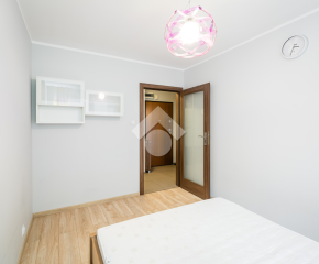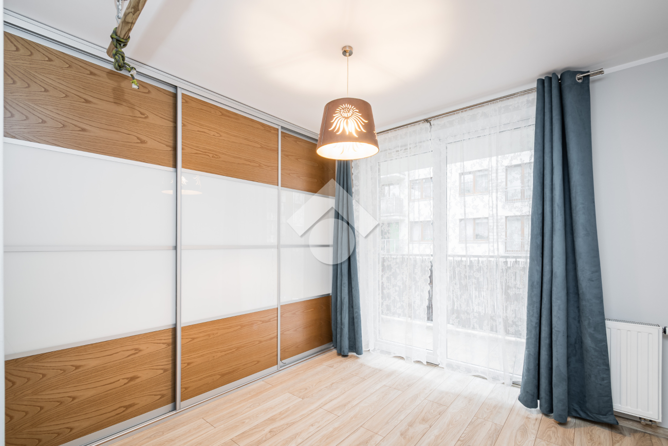 Mieszkanie oferuje dwa komfortowe pokoje – w jednym znajduje się duża szafa w zabudowie, w drugim łóżko o wymiarach 140×200 cm. Przedpokój również wyposażony jest w pojemną, zabudowaną szafę.