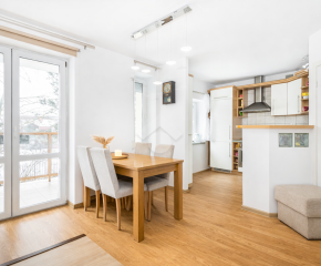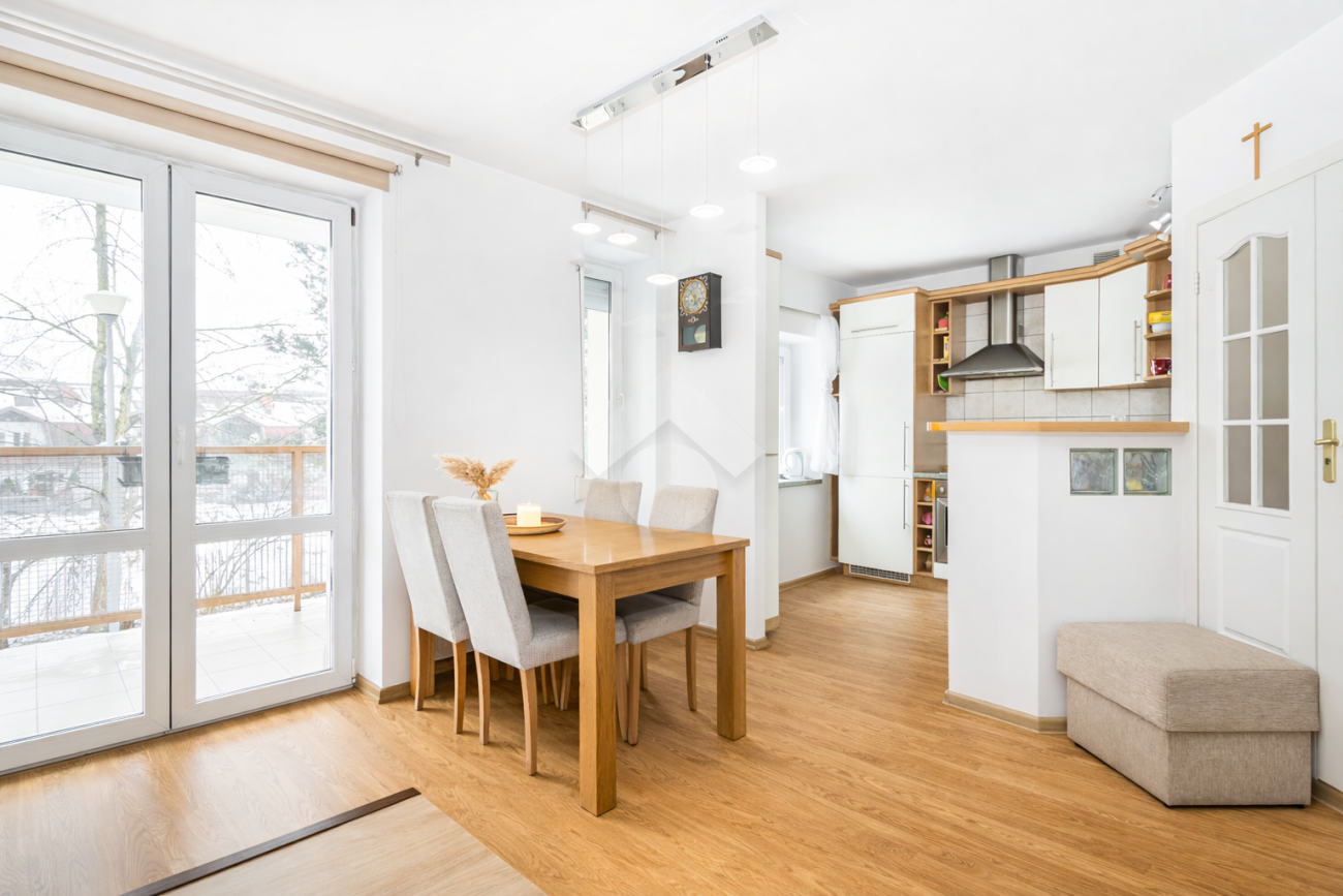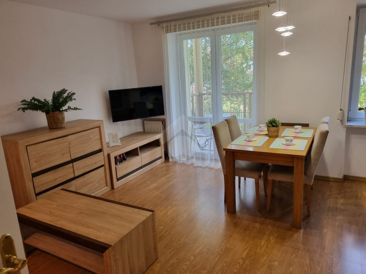 • Salon z aneksem kuchennym i wyjściem na balkon