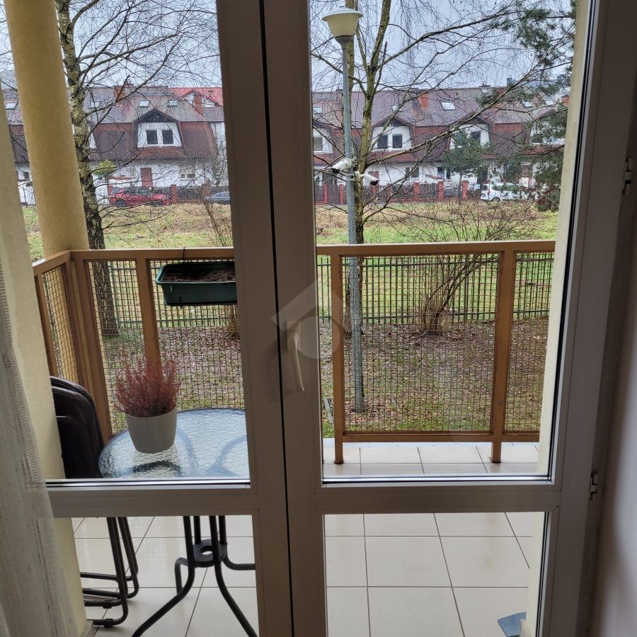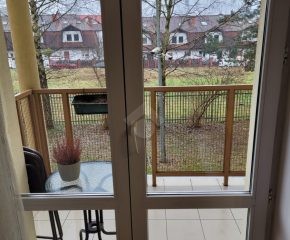 Z balkonu rozpościera się widok na tereny zielone, co zapewnia ciszę i komfort wypoczynku.