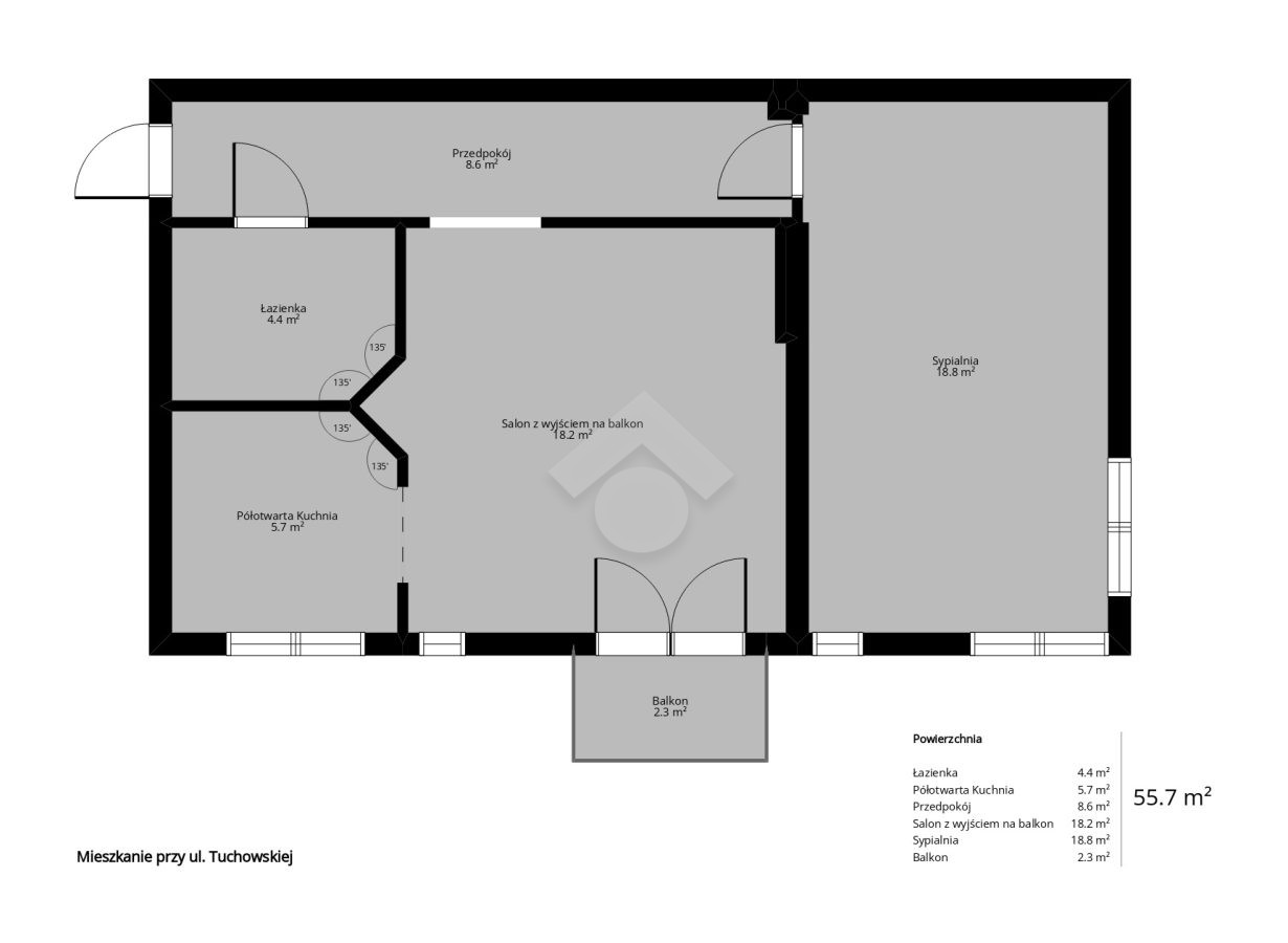 • Liczba pokoi: 2 (sypialnia + salon z aneksem kuchennym)