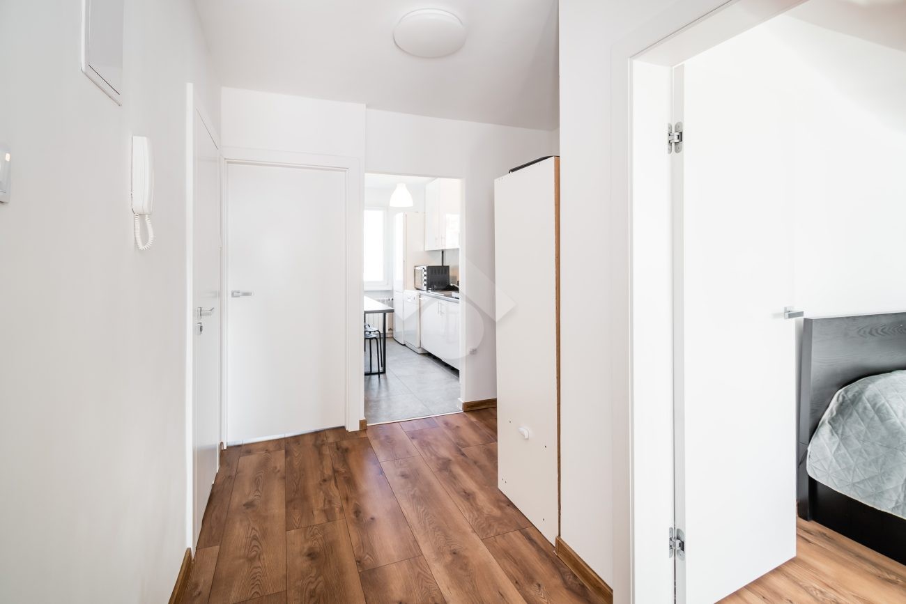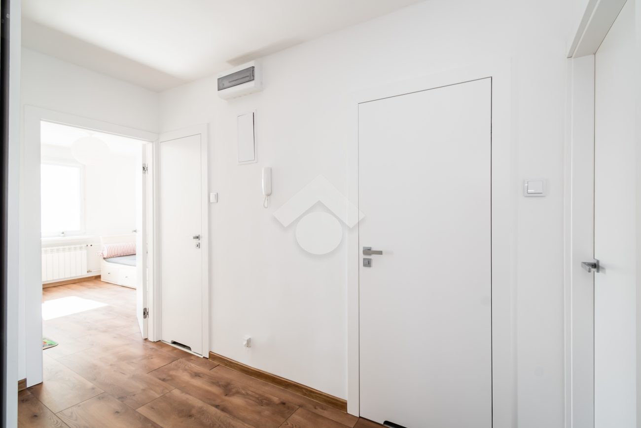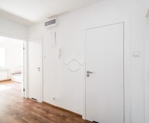 The apartment has undergone a complete renovation, including the replacement of electrical installations, smoothing of walls, installation of new floor panels, and tiles.