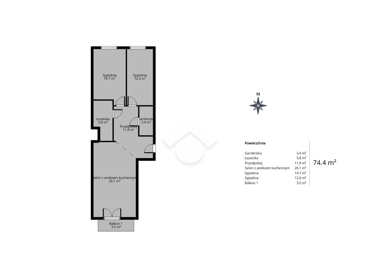 Liczba pokoi: 3 (w tym duży salon z aneksem kuchennym i dwie sypialnie)