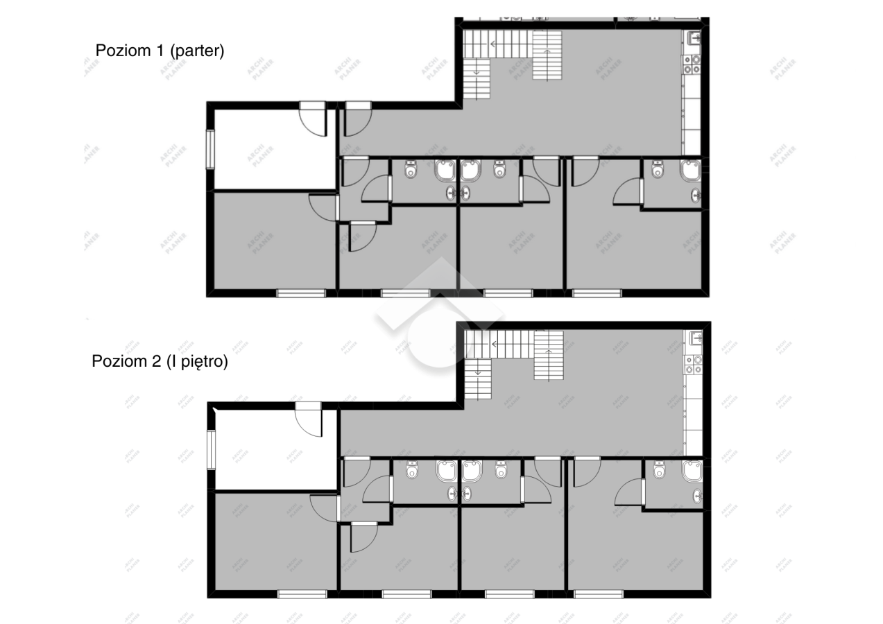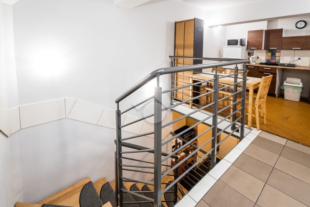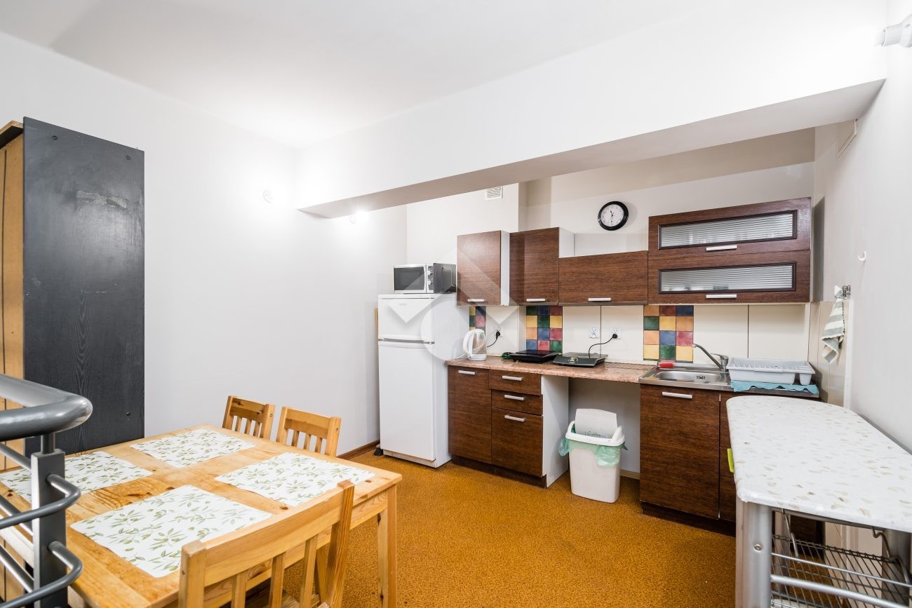 A two-level apartment with a total area of 145.44 m², located on the ground floor of a renovated tenement house. Currently divided into 8 independent rooms, 6 bathrooms, and 2 halls with kitchenettes, it is an excellent investment opportunity for rental purposes. The interior layout, however, also allows for an easy rearrangement into a traditional family apartment.