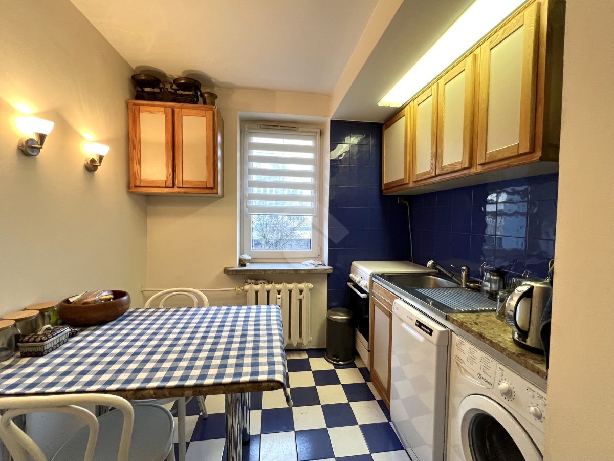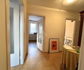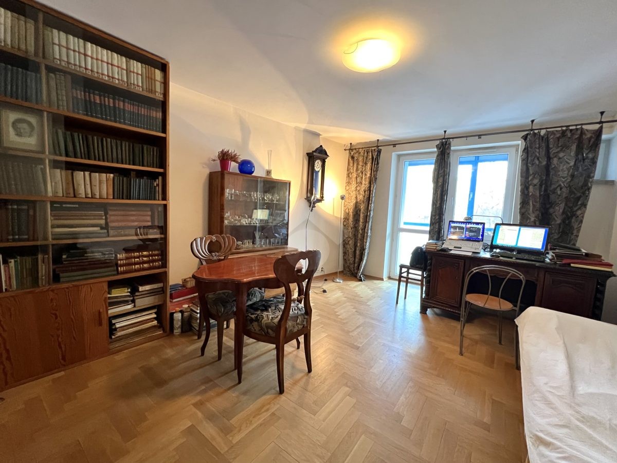 The apartment is bright and spacious, with a triple-aspect exposure, ensuring excellent natural light throughout the day. The property is in very good technical condition and requires only minor cosmetic updates, depending on the new owner’s preferences. The floors feature well-preserved wooden parquet, adding a classic character to the interior.