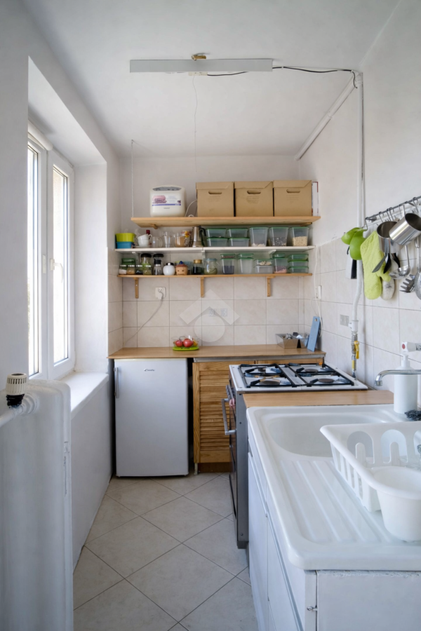 The apartment consists of a functional room, a separate kitchen, a bathroom with a bathtub, a hallway, and a balcony. The property is well maintained and in good condition. The room has access to the balcony, and the separate kitchen is equipped with basic appliances.