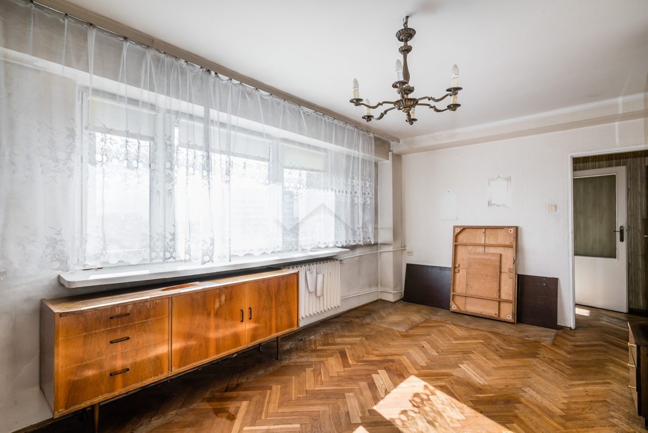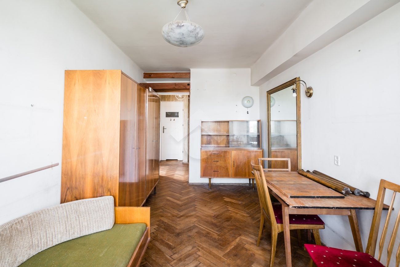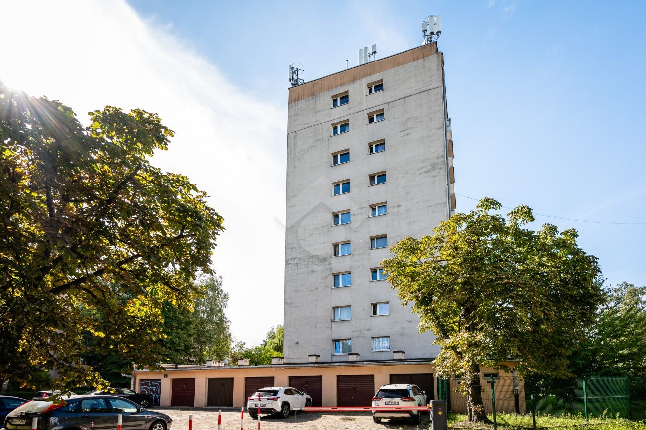 We present you with an attractive apartment for sale, located on the 7th floor of a brick block of flats. The apartment is in need of renovation. The windows offer a beautiful view of the Krakow skyline. There is a possibility to purchase a garage with a separate land and mortgage register. This is an excellent option for those looking for a great investment opportunity or their own space in a green and peaceful area, yet close to the city center.