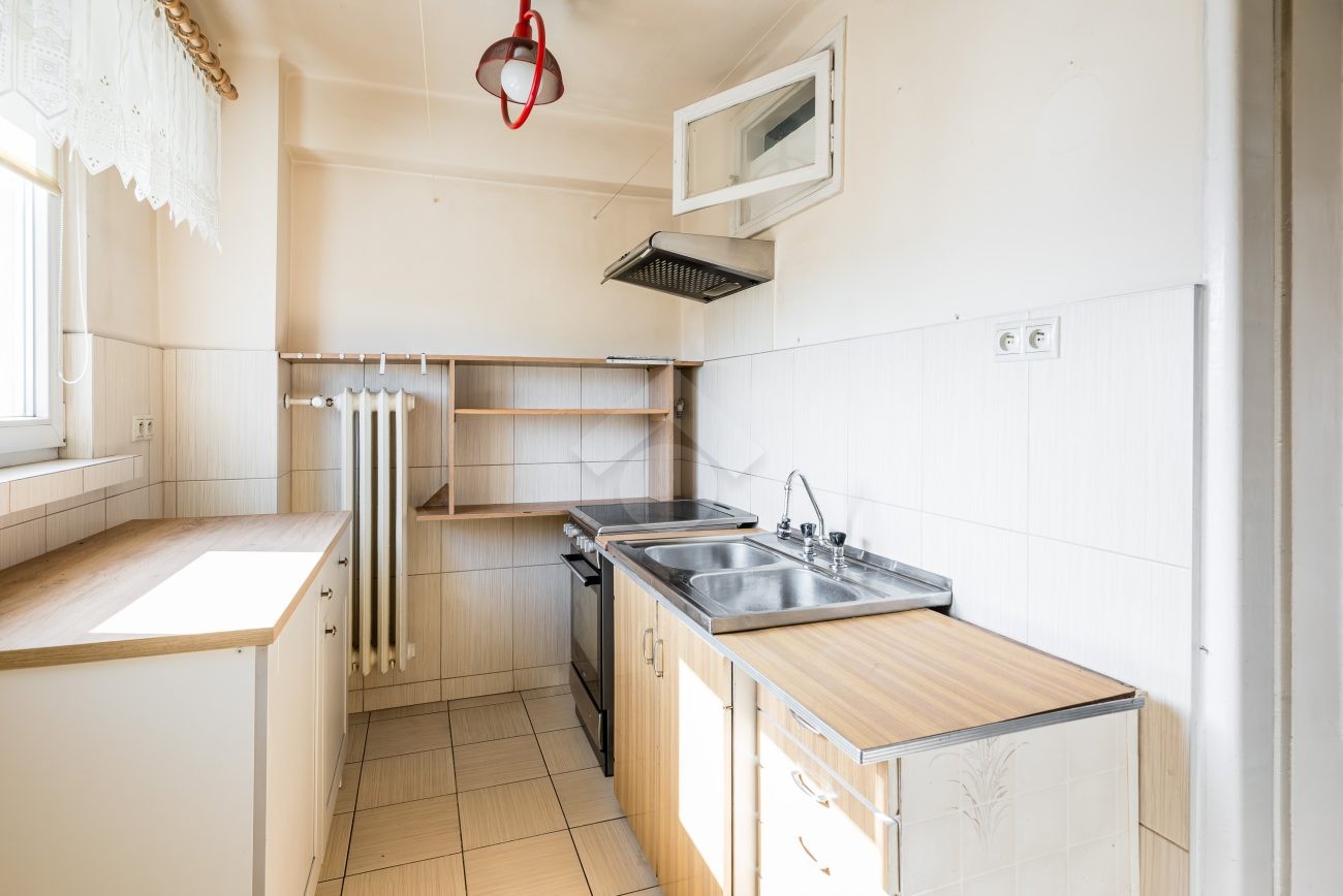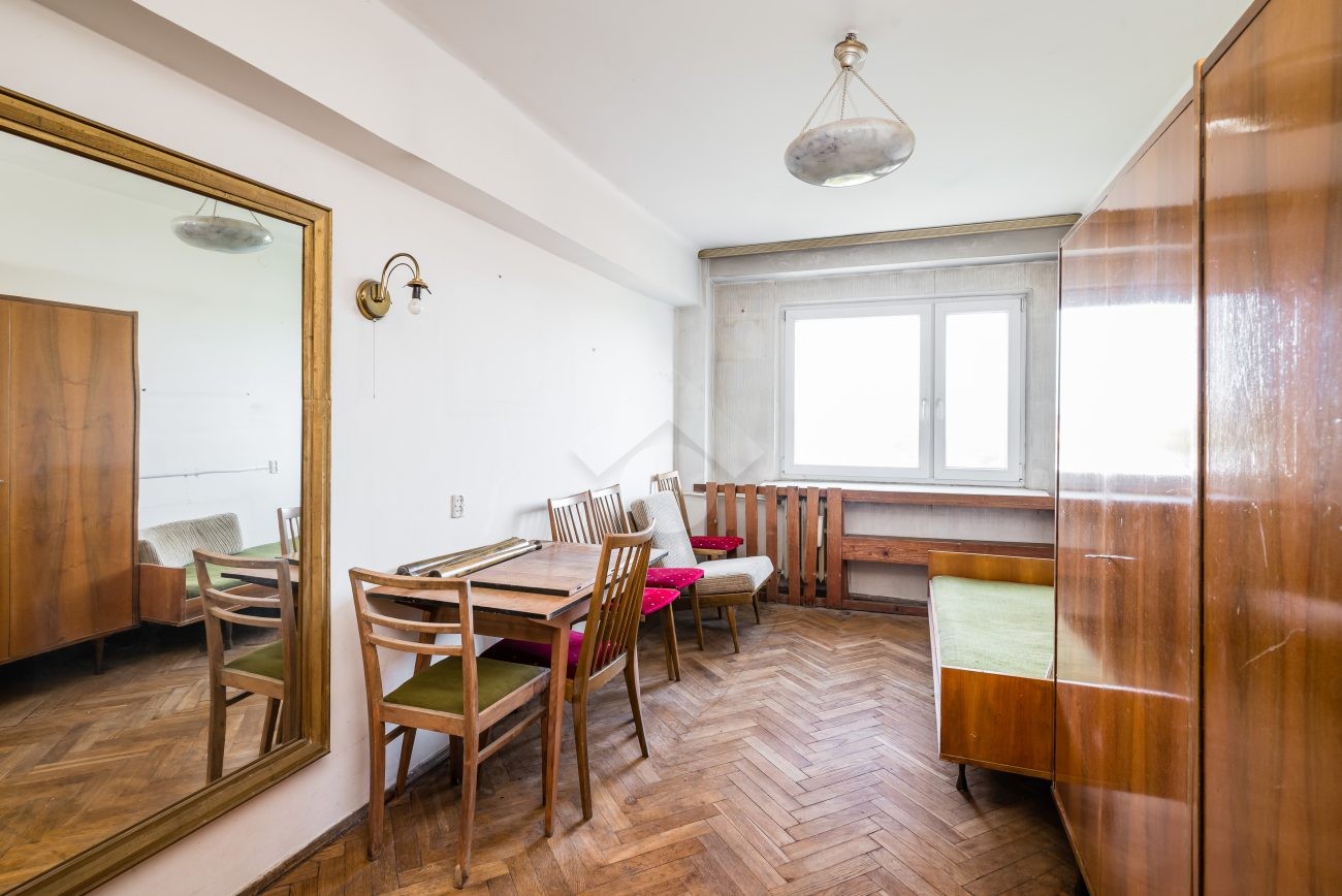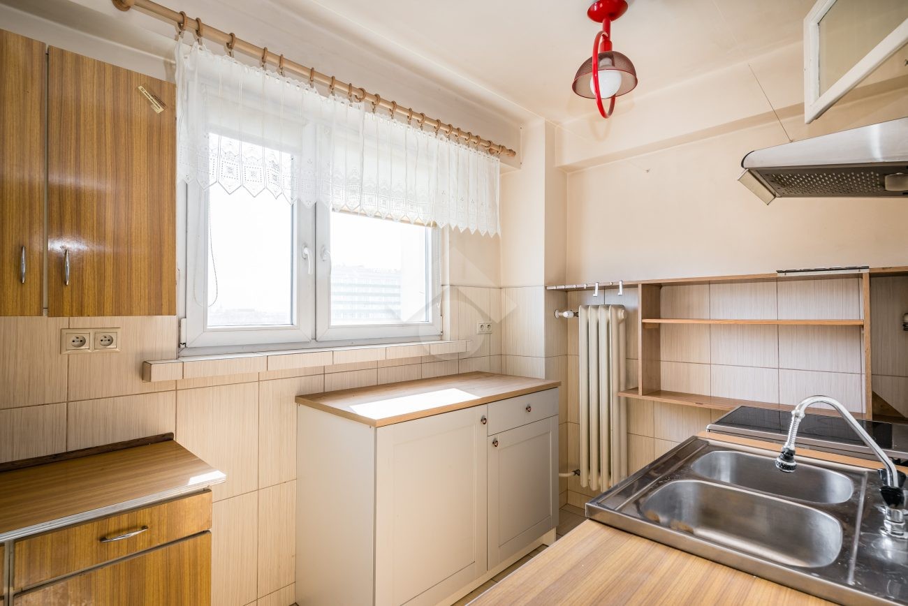 We present you with an attractive apartment for sale, located on the 7th floor of a brick block of flats. The apartment is in need of renovation. The windows offer a beautiful view of the Krakow skyline. There is a possibility to purchase a garage with a separate land and mortgage register. This is an excellent option for those looking for a great investment opportunity or their own space in a green and peaceful area, yet close to the city center.