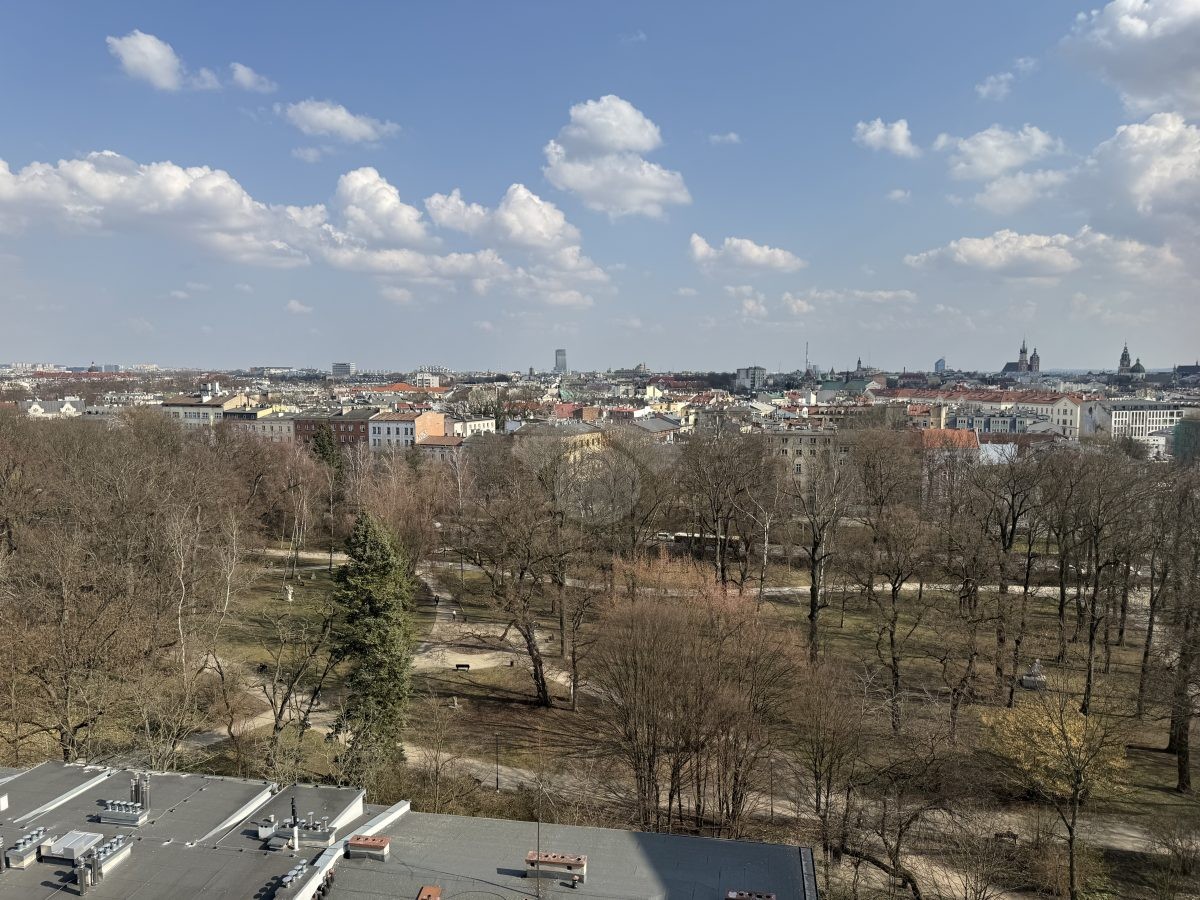 We present to you an attractive apartment for rent located on the eleventh floor of a residential building near Krakowski Park. It is an excellent option for people looking for a compact place to live in a great location, close to the city center and Kraków universities.