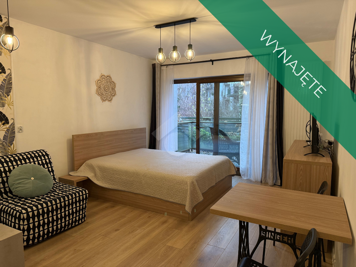 For rent a bright and functional studio apartment with an area of 28 m², located on the ground floor of a modern building from 2017 on a quiet Chopina Street – in the immediate vicinity of Park Krakowski. The apartment consists of a spacious living room with a kitchenette, a bathroom with a toilet, and a large terrace. The property is well-lit thanks to its eastern exposure and is ideal for a single person or a couple looking for a comfortable apartment in a great location close to the city center, yet in a quiet and green area.