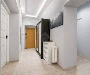 The apartment is bright and well-lit thanks to its dual exposure (east–west), ensuring natural light throughout the day. The interiors are finished with laminate flooring, giving them a modern and aesthetic character.