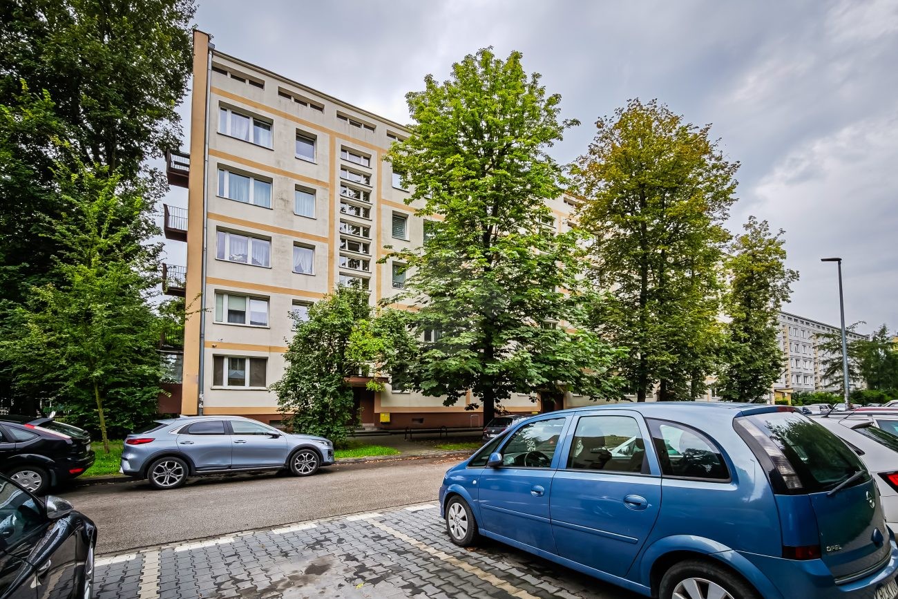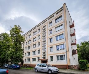 Nieruchomość położona jest na wysokim parterze w zadbanym, czteropiętrowym bloku z cegły, wybudowanym w 1970roku.