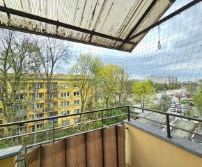 Nieruchomość położona jest na 4. piętrze w zadbanym, czteropiętrowym budynku z lat 80.